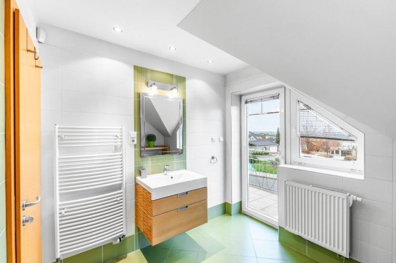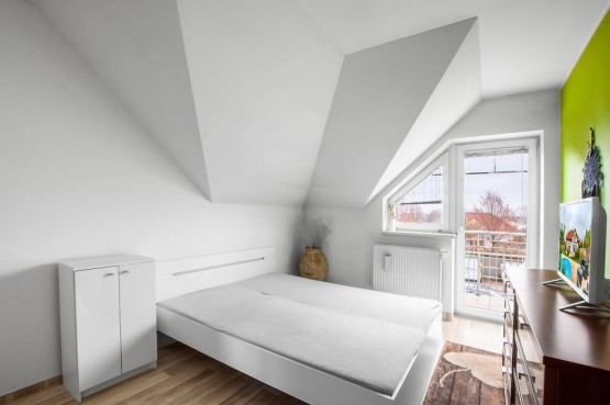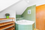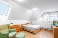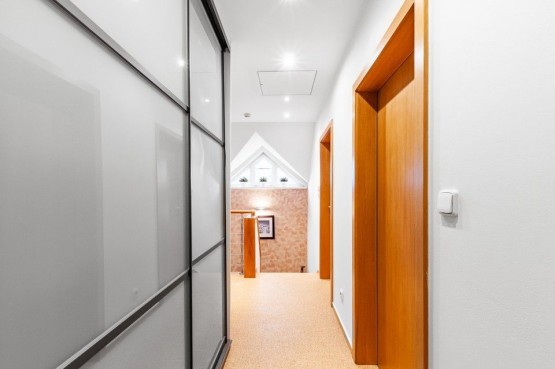 V podkroví jsou 3 pokoje se vstupem na balkon, koupelna s rohovou vanou, samostatným sociální zařízení WC, chodba s vestavěnými skříněmi. V patře je také velká ložnice s vlastní koupelnou, sociální zařízení WC a oddělenou šatnou.