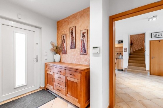 Dům leží na poze...mku o výměře 713m2, jehož zastavěná plocha je 119m2 s orientací na východ/západ a nabízí oboustranný výhled do zeleně.