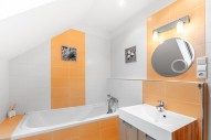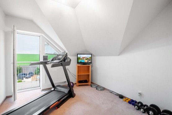 V podkroví jsou 3 pokoje se vstupem na balkon, koupelna s rohovou vanou, samostatným sociální zařízení WC, chodba s vestavěnými skříněmi. V patře je také velká ložnice s vlastní koupelnou, sociální zařízení WC a oddělenou šatnou.