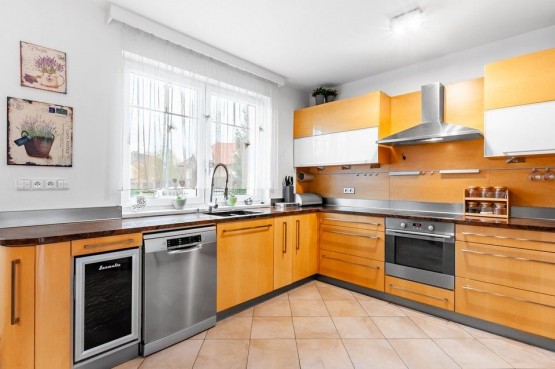 Dispozice domu 5kk se skládá ze vstupní haly, technické místnosti + sociální zařízení WC a sprchou, komory a nedílnou součástí je prostorná obývací část, která je spojena s kuchyní a jídelnou. Kuchyň má vestavěné spotřebiče a dvoukřídlou chladničkou.