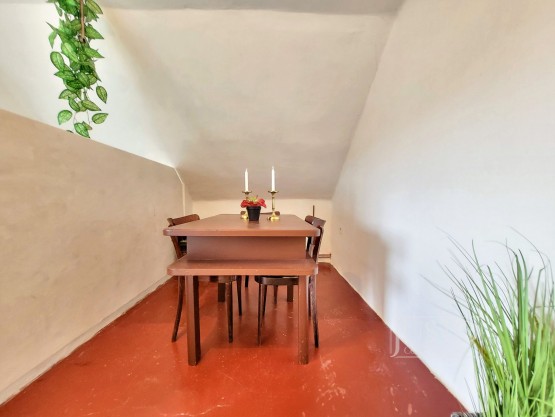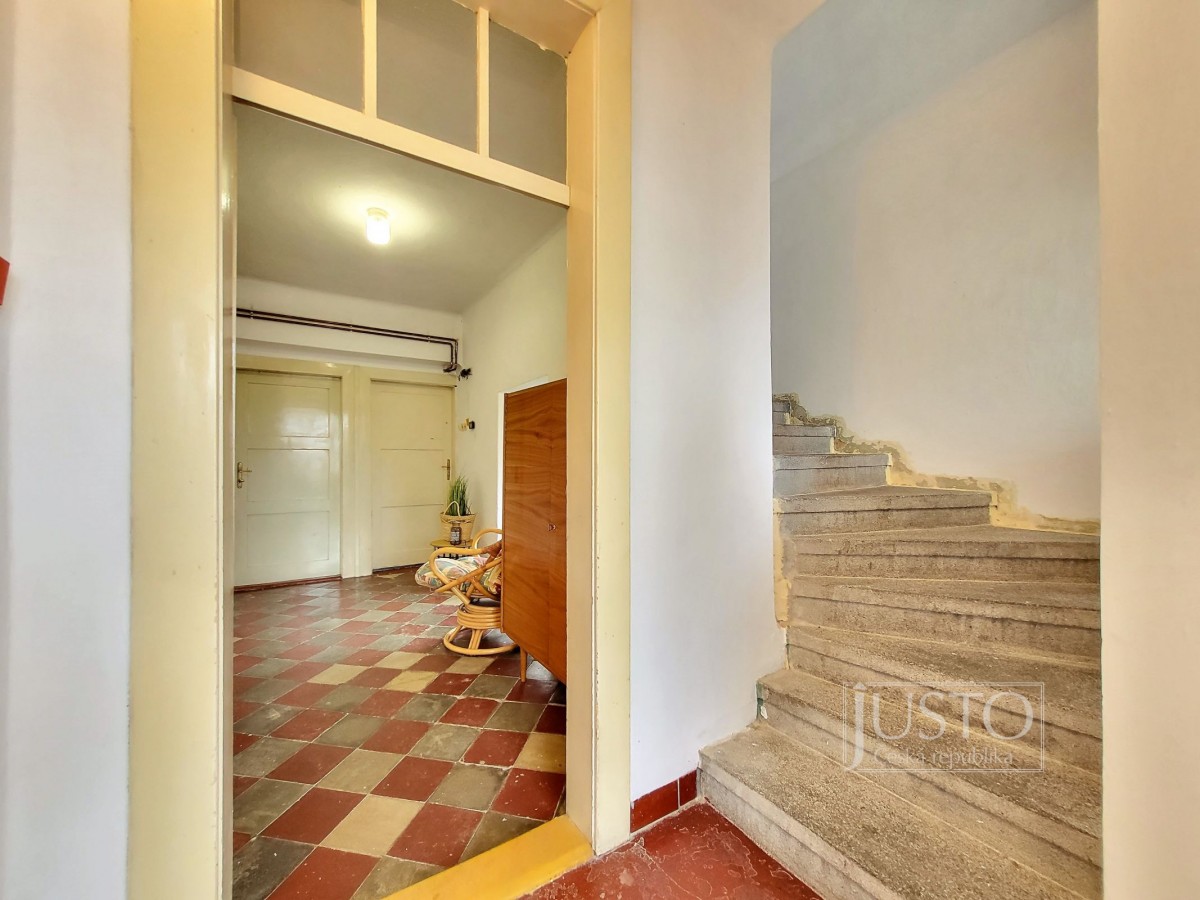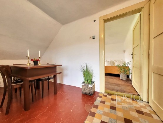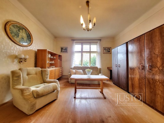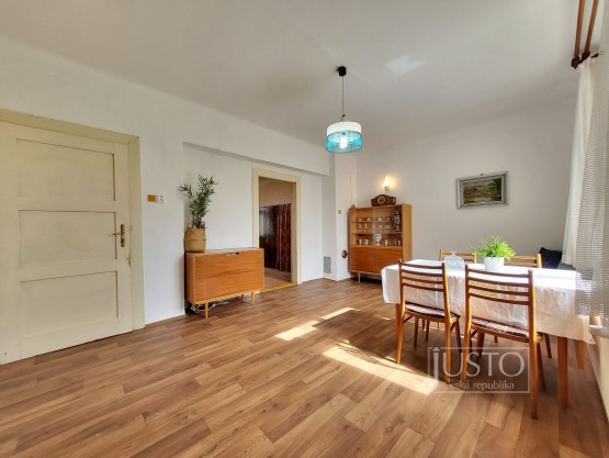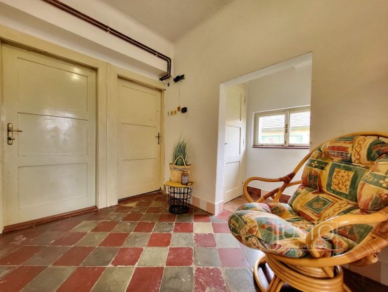 Rodinný dům byl postavený ve 30. letech minulého století. V přízemí je vstupní hala, ze kt...eré je přístupná nově zrekonstruovaná koupelna s vanou a toaleta, která je zvlášť. V přízemí je dále obývací pokoj, který je orientován do ulice (tato místnost by mohla sloužit jako ložnice) a druhý pokoj, který dnes slouží jako jídelna s orientací do zahrady. V tomto pokoji se nachází šatna (špajz). Kuchyně je v zadní části domu, navazuje na ní veranda, ze které je přístupná zahrada. Majitelé měli v plánu tyto dvě prostory spojit a vybudovat tak velkou kuchyni s přímým vstupem na zahradu.