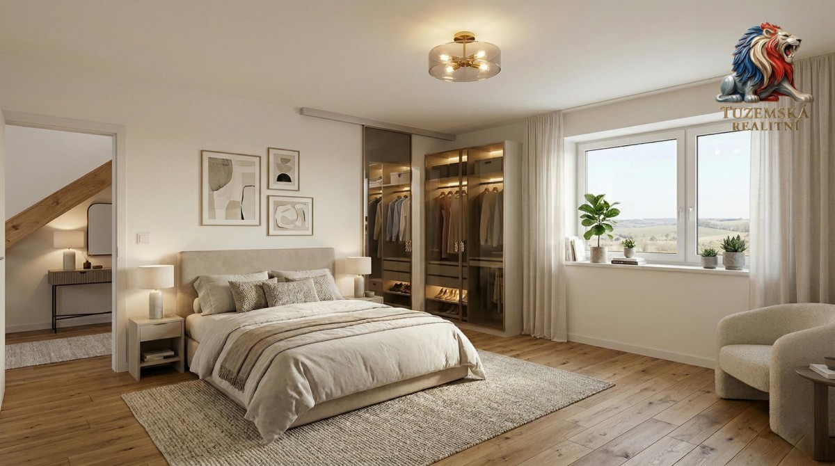 Konečně prostor, který si zařídíte podle sebe. Představte si tu radost z výběru vlastních podlah a obkladů. V přízemí na vás čeká velký prosvětlený obývák spojený s kuchyní (na kterou už máme připravený úžasný projekt i rozvody). V patře je klidová zóna s manželskou ložnicí s vlastní prostornou šatnou, další pokoj, druhá koupelna a odpočinková zóna pro večerní relax.