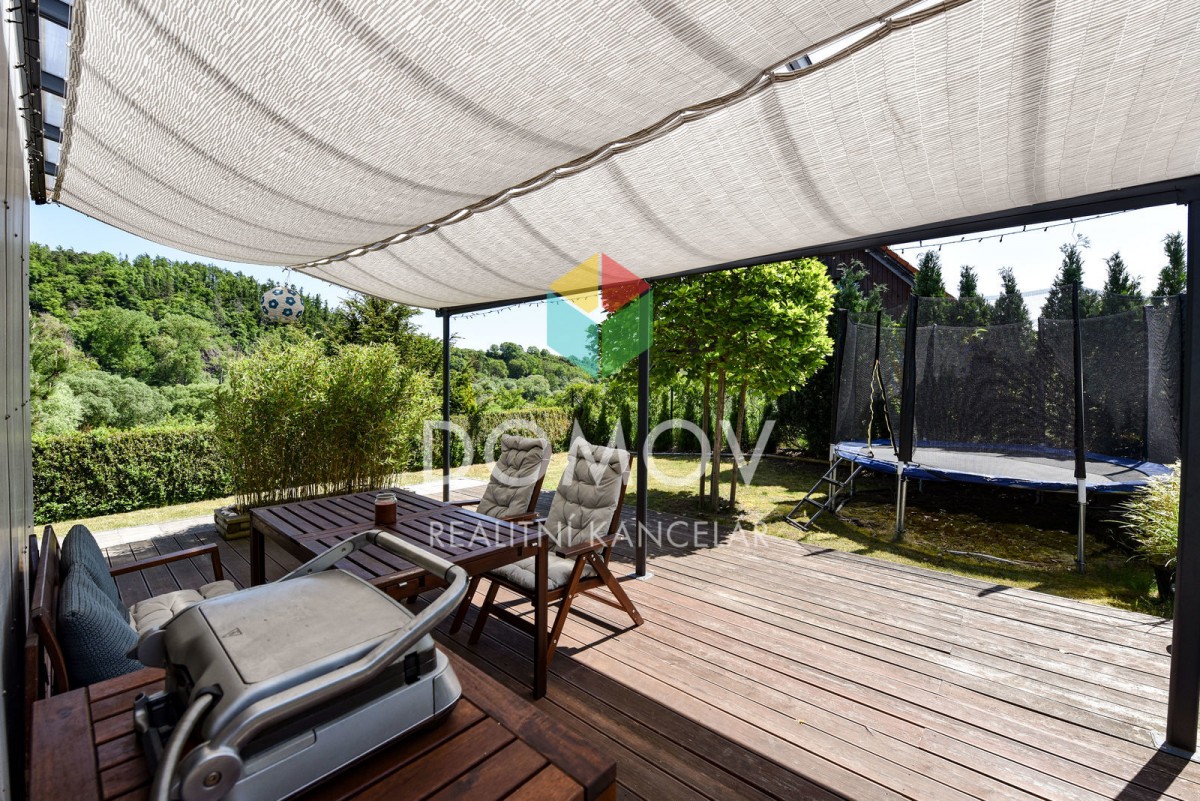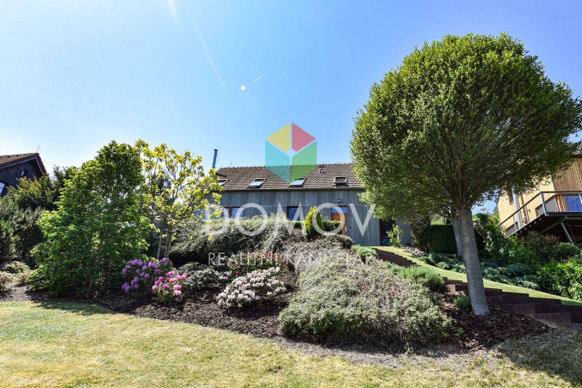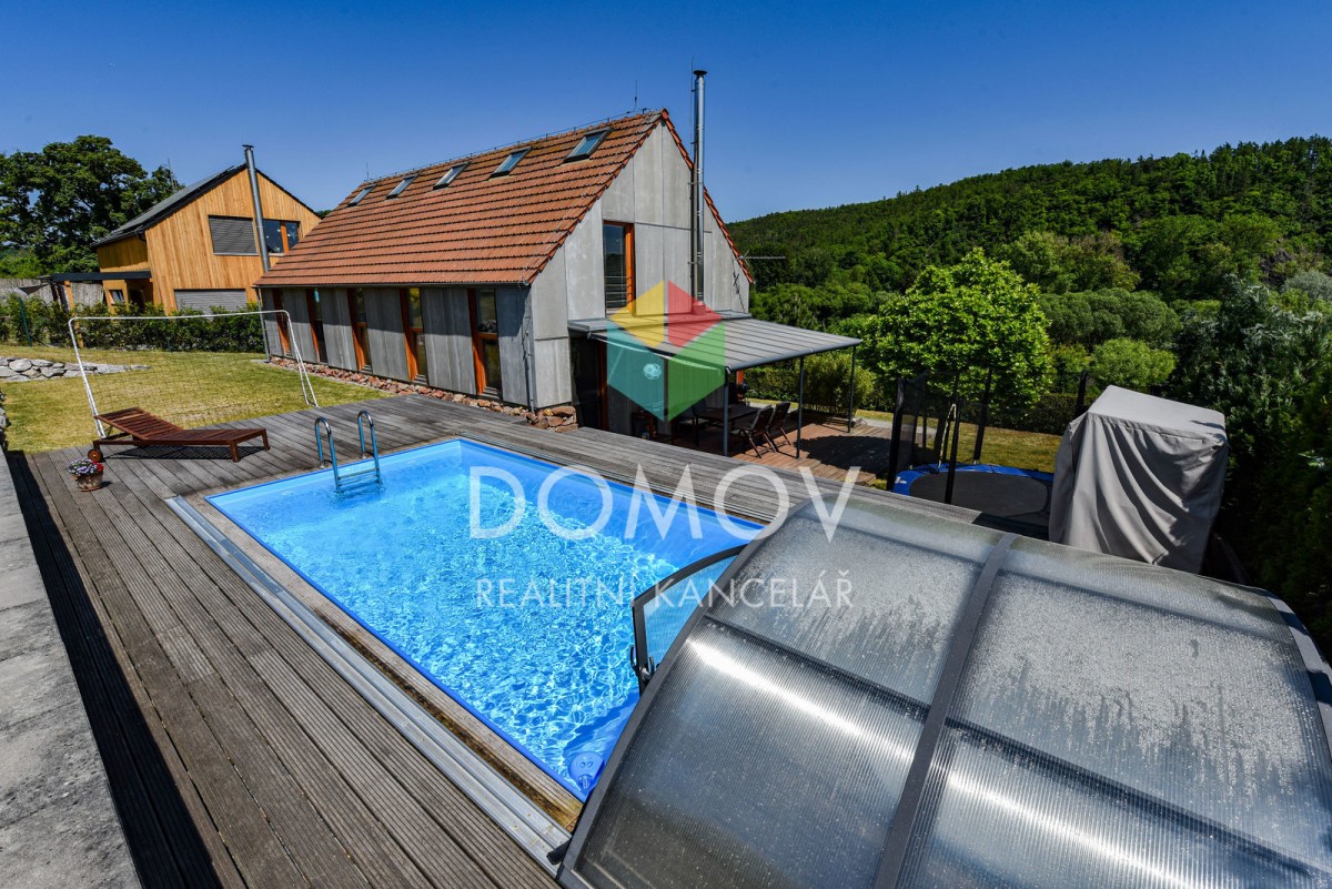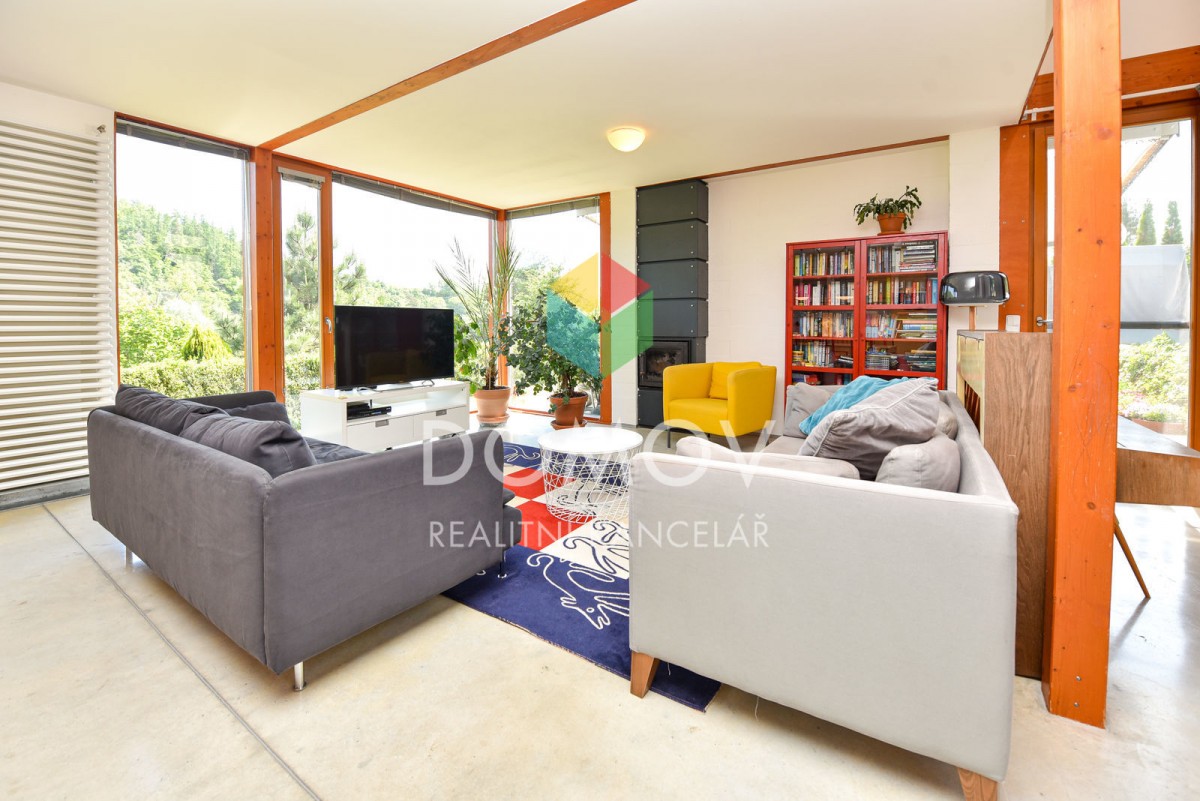 Mám pro Vás zajímavou nabídku - rodinný dům s promyšlenou dispozicí ve svahu nad řekou Berounkou. Majitelé udělali z nevýhody přednost a do svažitého terénu si nechali architekty navrhnout stavbu domu, který je vzdušný, ...velice světlý a s nádhernými výhledy. Stavba kombinuje dřevěnou konstrukci se zděnou, hlavní důraz je kladen na využití přírodních materiálů. Fascinující jsou dominantní přiznané dřevěné trámy, bezfalcové dveře výšky 2, 5 m a celá prosklená východní část.