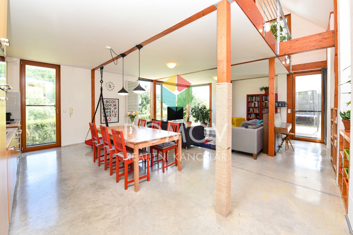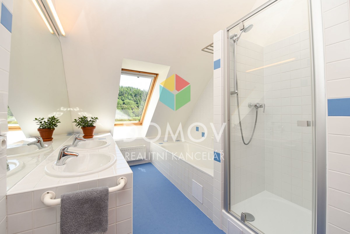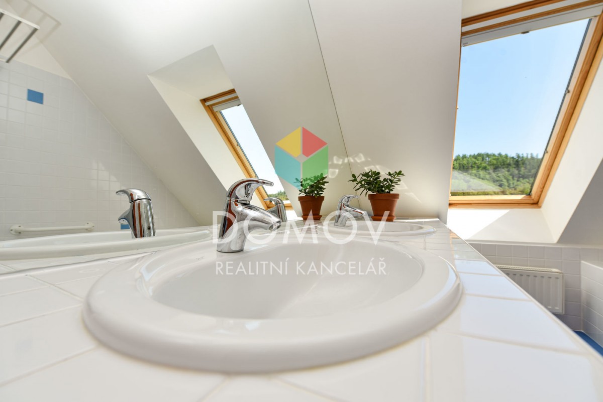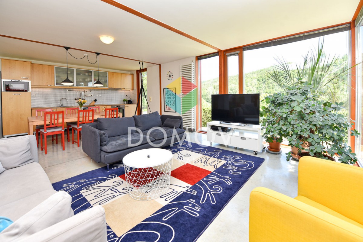 Mám pro Vás zajímavou nabídku - rodinný dům s promyšlenou dispozicí ve svahu nad řekou Berounkou. Majitelé udělali z nevýhody přednost a do svažitého terénu si nechali architekty navrhnout stavbu domu, který je vzdušný, ...velice světlý a s nádhernými výhledy. Stavba kombinuje dřevěnou konstrukci se zděnou, hlavní důraz je kladen na využití přírodních materiálů. Fascinující jsou dominantní přiznané dřevěné trámy, bezfalcové dveře výšky 2, 5 m a celá prosklená východní část.