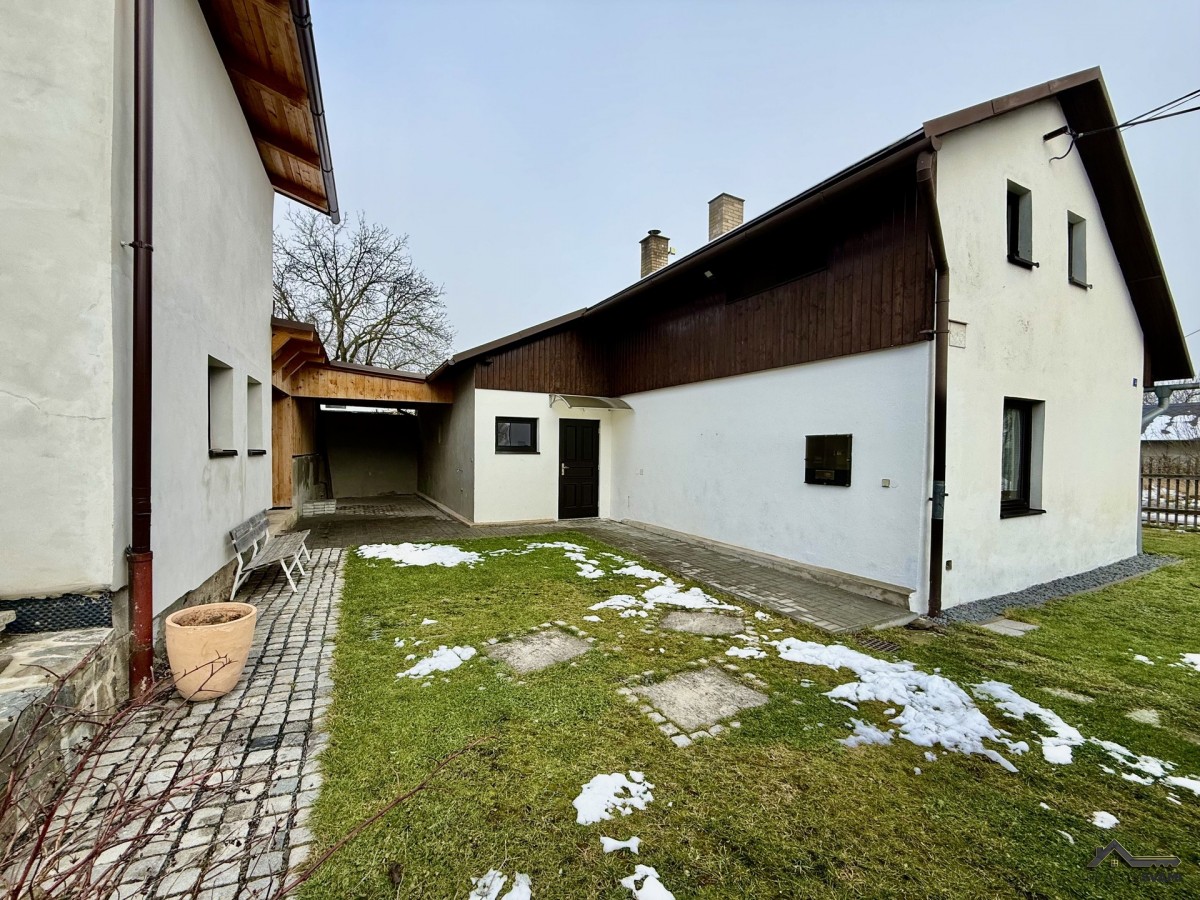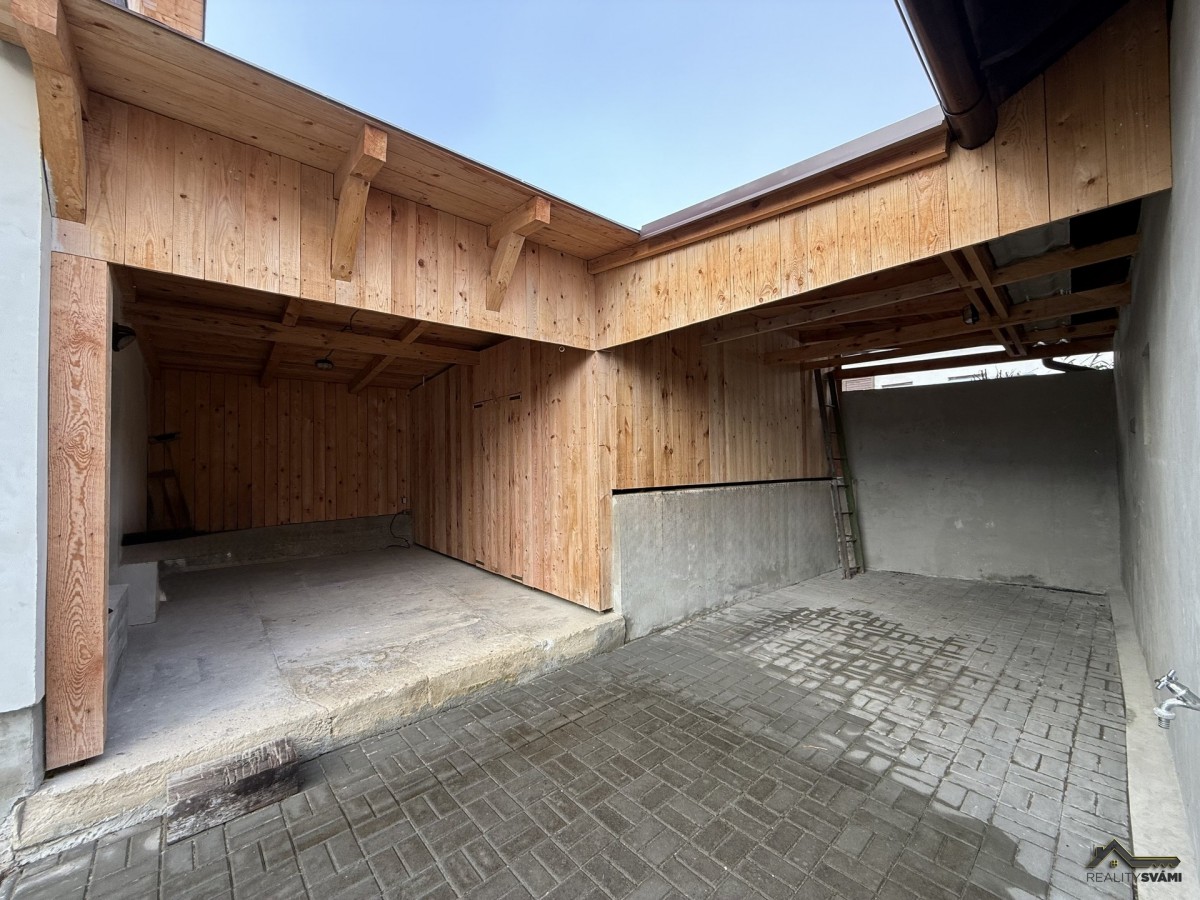 Součástí pozemku je nová hospodářská budova s příjemným krytým posezením, které nabízí ideální prostor pro trávení volného času.
