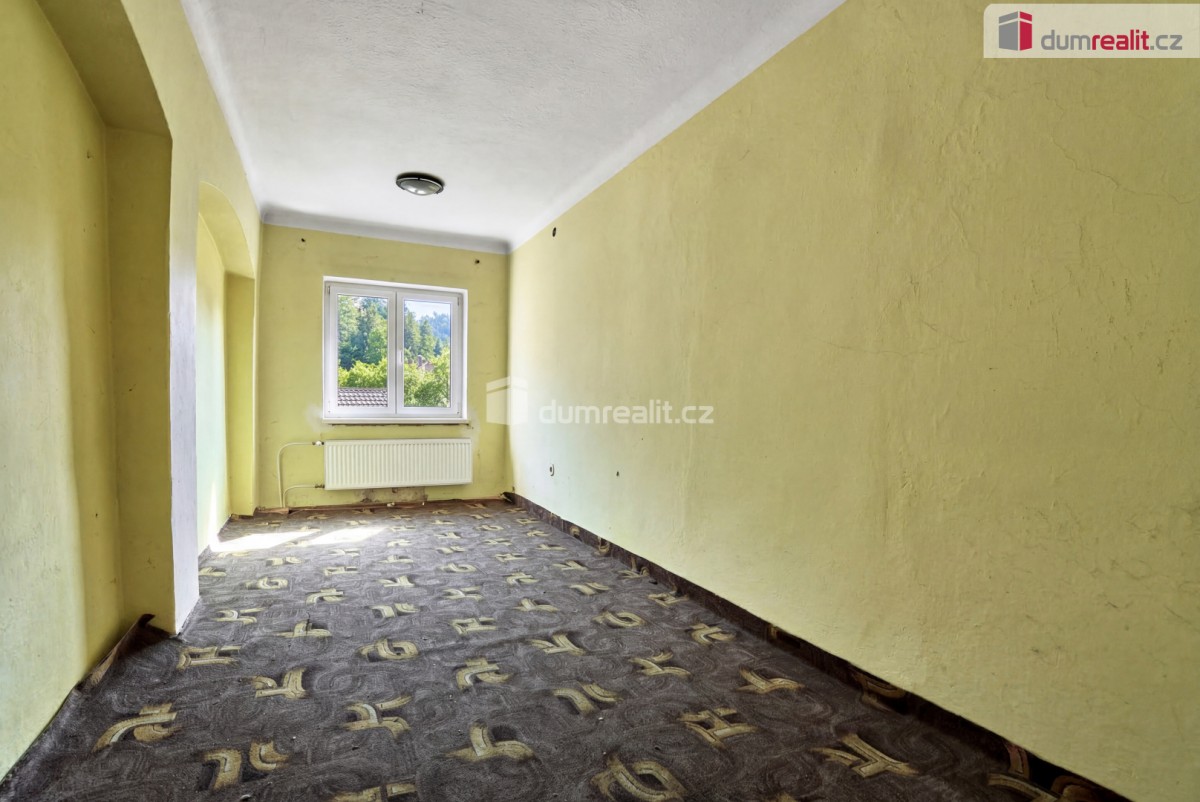 Cena včetně právních služeb a provize RK . Dumrealit. cz Vám nabízí prodej rodinného domu 4+kk v Dubině, části obce Šemnice nedaleko Karlových Varů. Dům se nachází v klidné čá...sti obce na pozemku o výměře 624 m² a nabízí ideální možnost klidného bydlení s možností úprav dle Vašich představ. Dům je zděný, nepodsklepený s kamennými základy, dvoupodlažní s podlahovou plochou 150 m². Dispozice domu: 1. NP (první nadzemní patro): obývací pokoj s kuchyňským koutem, zasklená terasa, chodba se schodištěm, koupelna se sprchovým koutem a sociální zařízení WC, technická místnost (kotelna). 2. NP (druhé nadzemní patro): 3 samostatné pokoje a chodba se schodištěm. Dům disponuje prostorným půdním prostorem s možností vybudování dalších obytných místností. V domě byla provedena před několika lety výměna plastových oken a těles radiátorů, jinak je dům v původním stavu vhodný k rekonstrukci dle vašich představ. Vytápění domu je zajištěno kotlem na tuhá paliva a ohřev vody je zajištěn el. bojlerem. Na pozemku se nachází vlastní studna s pitnou vodou, napojená do domu (domácí vodárna Darling). Kanalizace je zajištěna pomocí septiku. K domu patří prostorná a slunná zahrada. Součástí prodeje je také protilehlý pozemek o výměře 390 m² s mnoha možnostmi využití (zahrada, hobby, možnost vybudování dalších objektů dle územního plánu). Tato nemovitost je ideální pro ty, kteří hledají klidné bydlení s možností dokončení domu podle vlastních představ. Vzdálenost města Ostrov nebo Karlových Varů je jen 15 km. Pro více informací a prohlídku nás neváhejte kontaktovat. Vzhledem k tomu, že před zadáním do inzerce nebyl vyhotoven PENB, je tento dům v souladu s platným zákonem zařazen do energetické třídy G. Ev. číslo: 655071. Energetický štítek: G