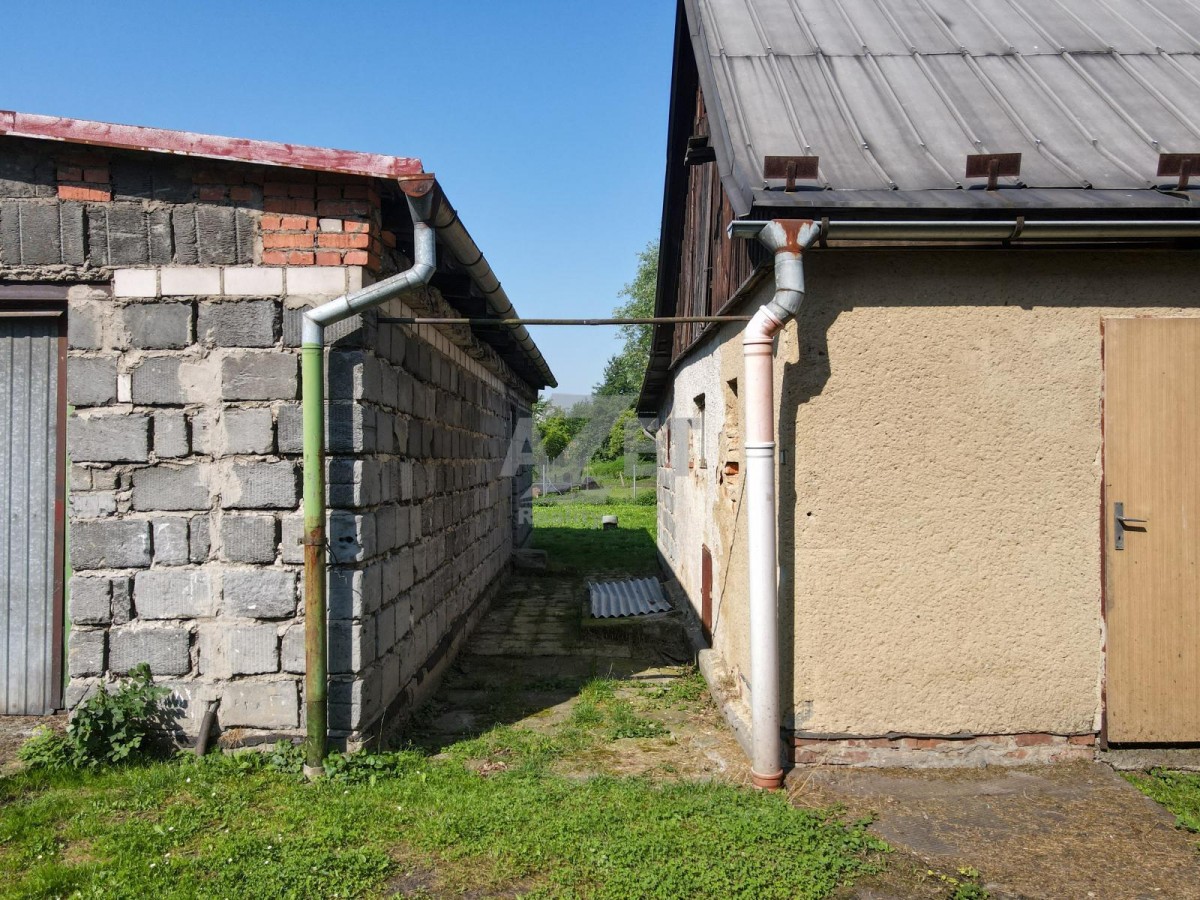 Na pozemku se nachází garáž o rozloze 70 m2 a hospodářská budova o rozloze 57 m2. Dům vyžaduje celkovou rekonstrukci a má dispozici 3+1 s možností využití půdních prostor pro další dva pokoje nebo jednu větší otevřenou místnost, například jako mezonet. Středem obytné části domu prochází komín, který lze využít pro připojení krbu.