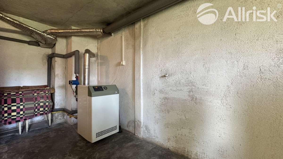 Výhodou je dvojí vytápění – plynové i na tuhá paliva, což zajišťuje flexibilitu a úsporu nákladů. K dispozici je připojení plynu, odpad řešený jímkou a nechybí ani vlastní studna.