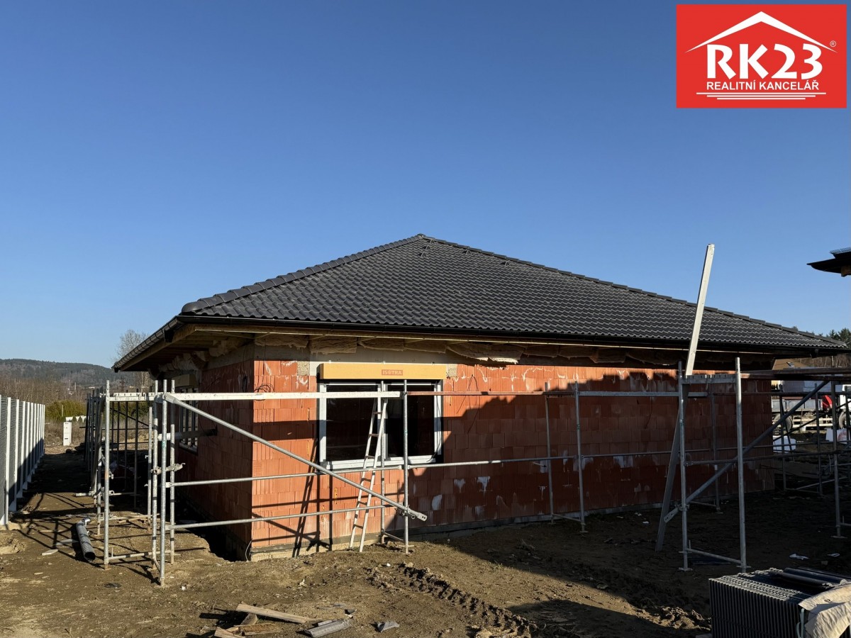 800 m2. Jedná se o cihlovou novostavbu. Dům je v současné době ve výstavbě, což umožňuj...e novému majiteli sledovat celou výstavbu a také individuálně řešit dispoziční uspořádání domu. Fotodokumentace bude průběžně aktualizována. Byla již položená základová deska a probíhají další stavební práce. Dům bude postaven z kvalitních materiálu a bude vybaven nejnovějšími technologiemi. Vytápění bude řešeno tepelným čerpadlem a ohřev vody bojlerem. Dispozičně se bude skládat z obývacího pokoje s kuchyňským koutem, ložnice, dvou pokojů, koupelny, chodby a terasy, která je ideální pro relaxaci a posezení venku. Na pozemku bude možnost parkování pro dvě auta. Celý pozemek bude oplocen, zatravněn a bude vyvedená voda na zalévání zahrady. Dům bude opatřen venkovními žaluziemi a venkovním osvětlením. Samozřejmostí bude kamerový systém a zabezpečení. Tato novostavba vyroste v atraktivní a klidné zástavbě rodinných domů. Je to jedinečná příležitost pro klidné bydlení v příjemném prostředí pro celou rodinu. Poblíž se nachází lesy, Velký Knížecí rybník a Drmoulský rybník. Vzdálenost do Mariánských Lázní je 2 km, cca 10 minut jízdy autem. V obci se nachází veškerá občanská vybavenost, obecní úřad, lékař, pošta, základní a mateřská škola a nákupní centrum.