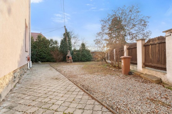 Dům má bezpečnostní rolety na oknech a na pozemku je dostatek místa pro parkování několika automobilů.