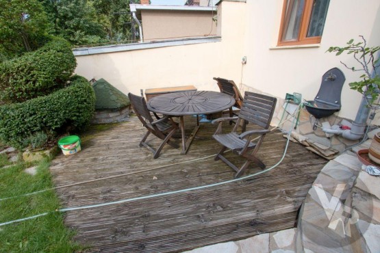 Dispozice: V přízemí se nachází Zádveří 3, 25 m2, obývací pokoj s krbem a kuchyňským koutem 42, 3 m2, chodba 1, 4 m2, sociální zařízení WC 1, 3 m2, koupelna s vanou sprchovým koutem a bidetem 6, 16 m2, ložnice 12, 69 m2, zimní zahrada - 21, 74 m2, ze které je vstup do sklepa cca 10 m2 a na zahradu. Zahrada je krásně udržovaná, osázená okrasnými dřevinami, záhonek se zeleninou, dále se na zahradě nachází terasa s posezením a zahradní domek.