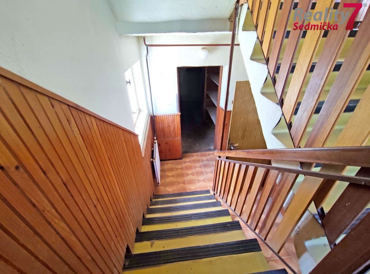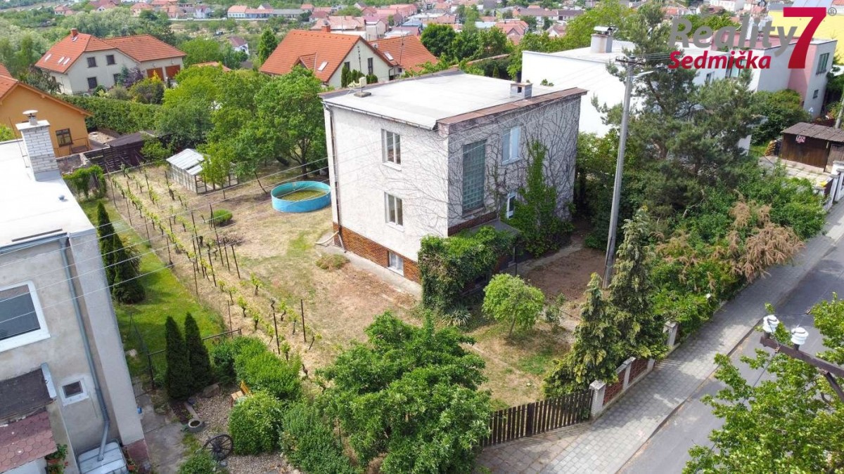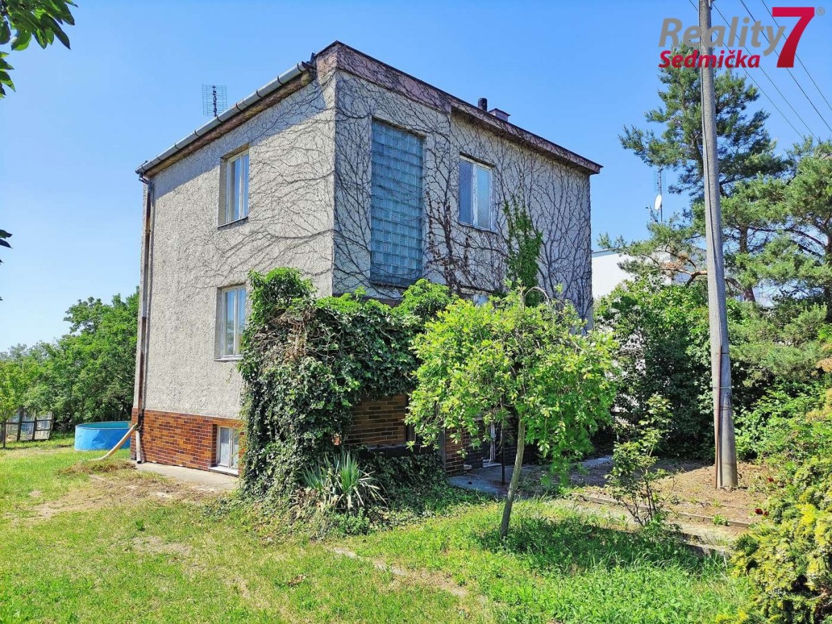 Celopodsklepený dům s ...garáží a dvěma nadzemními podlažími je napojený na elektřinu, plyn, vodu a kanalizaci. Vytápění kotlem na tuhá paliva v kombinaci s plynovým kotlem, ohřev vody elektrickým bojlerem. V 1. NP (první nadzemní patro) je samostatná kuchyň, obývací pokoj, pracovna s balkónem, ze kterého je výhled do zahrady, koupelna se sprchovým koutem a sociální zařízení WC. V 2. NP (druhé nadzemní patro) jsou dva pokoje, ložnice s balkónem, ze kterého je výhled do zahrady a na Znojmo, koupelna s vanou a sociální zařízení WC. Sklep se skládá ze spižírny, kotelny, prádelny a garáže spojené s dílnou. Z garáže je východ do zahrady. Na zahradě stojí další garáž, kryté posezení a menší dřevěná kolna na nářadí. Dům potřebuje celkovou revitalizaci. Možnost financování úvěrem - zařídíme.