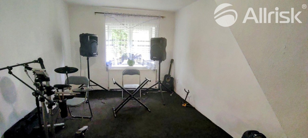 Jeden pokoj v podkroví už je před dokončením , prostorná půda skýtá možnost vytvořit další pokoje . ¨