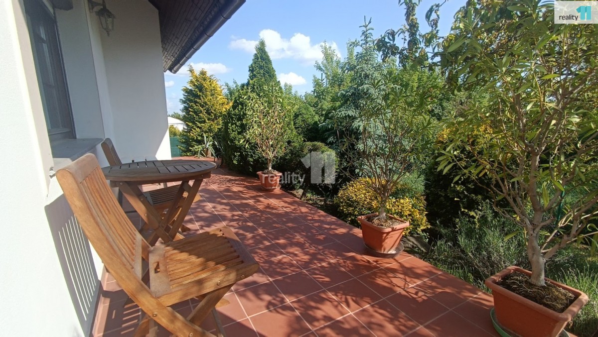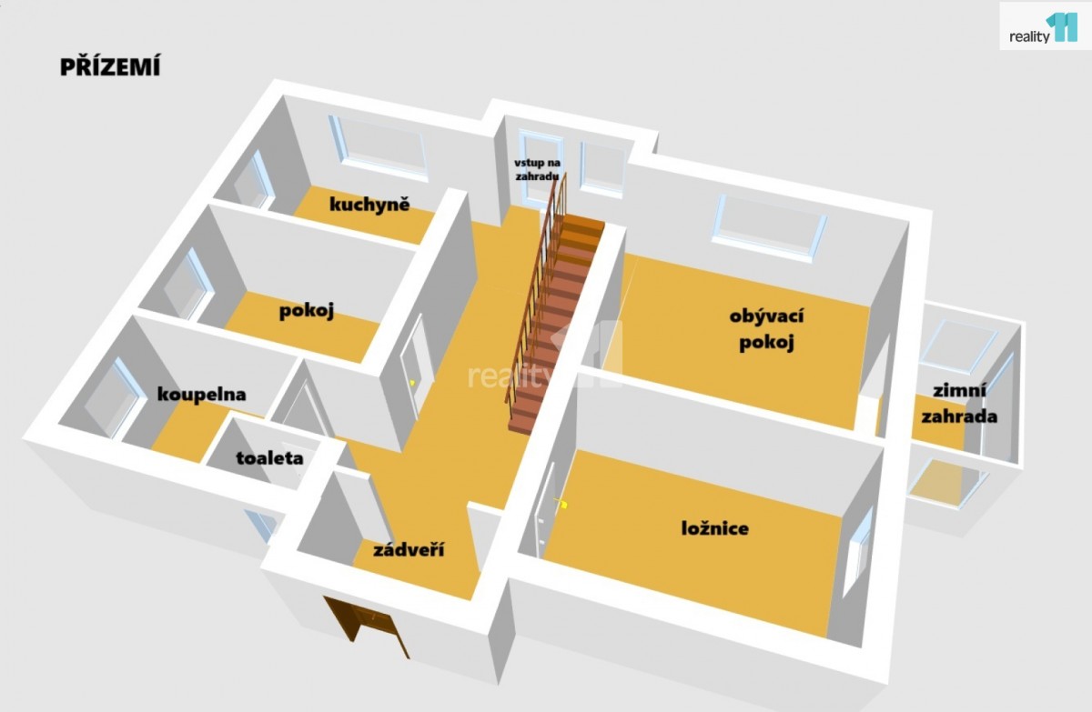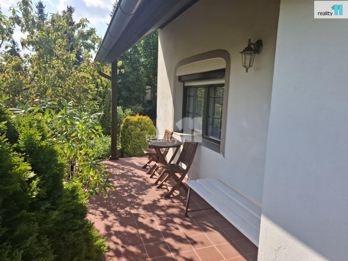• Přízemí nabízí plně vybavenou kuchyň s novou moderní kuchyňskou linkou a spotřebiči, světlý obývací pokoj se vstupem do malé zimní zahrady, dále dva neprůchozí pokoje, koupelnu a toaletu. Z kuchyně je přímý vstup na prostornou terasu s posezením a výhledem do zeleně.