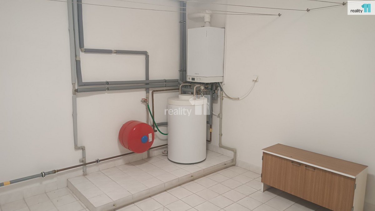 Vytápění zajišťuje plynový kondenzační kotel, ohřev vody probíhá přes samostatný zásobník.
