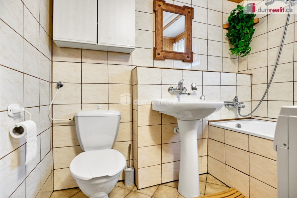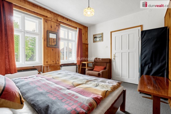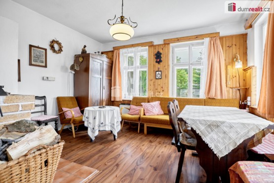 Dumrealit. cz Vám nabízí prodej domu v Abertamech, Dělnické ulici. Dům se zastavěnou plochou 95 m² a užitnou plochou 157 m² se nachází v pěším dosahu centra města. Soukromí si však zachovává díky své poloze odkloněné od hl...avní silnice a pozemku o rozloze 833 m² se zděnou kůlnou, trávníkem, jehličnatými stromy a venkovním posezením. Dům, postavený ve stylu oblíbeném a typickém pro krušnohorská města s dvěma nadzemními podlažími a půdou stojí na kamenné podezdívce a je z poloviny podsklepený. Střecha je kryta eko beronitovými šablonami. Vytápění je řešeno pro celý dům plynovým kotlem a radiátory ústředního topení. Pro rychlý nástup tepla nebo pro vytápění jen základních místností je do systému přidán i kotel na elektřinu. V obýváku v přízemí, propojeném s kuchyní je též krb s posezením. V kuchyni zůstala zachována i původní funkční kachlová kamna, navozující v mezidobí příjemnou tepelnou pohodu. V obou těchto místnostech je dostatek místa u stolů pro stravování nebo jen k posezení u vína. V přízemí je dále ložnice pro 2 osoby, koupelna s sociální zařízení WC, další samostatné sociální zařízení WC, a také dílna. Do patra nás vedou kamenné schody, cestou v mezipatře je koupelna se sprchovým koutem. V patře je společenská místnost, kuchyně se zachovalými kachlovými kamny, ložnice pro 2 osoby a tři menší ložnice v přístěncích pro další 4 osoby. Tato dispozice nabízí dostatek soukromí všem bydlícím. Okna domu jsou původní ošetřovaná dřevěná. Na snímku pozemku je vidět zděná kůlna s garáží pro 1 vozidlo. Videoprohlídka i záběry z dronu Vás ujistí, že do domu je možno se nastěhovat a ihned jej užívat. Horské město Abertamy je oblíbenou destinací vyznavačů zimních sportů, letní turistiky, je zde množství značených cyklostezek i cyklotrailů, a to i v areálu sjezdovek vrchu Plešivce, kde mají sedačkové lanovky přepravní kapacitu 7500 osob za hodinu. V Abertamech jsou dostupné různé možnosti stravování, nákupu potravin, drogerie, je zde pošta, lékař, cykloservis, autoservis, nové velice zajímavé muzeum hornictví a rukavičkářského průmyslu, za první republiky i poté proslaveném po celém světě.