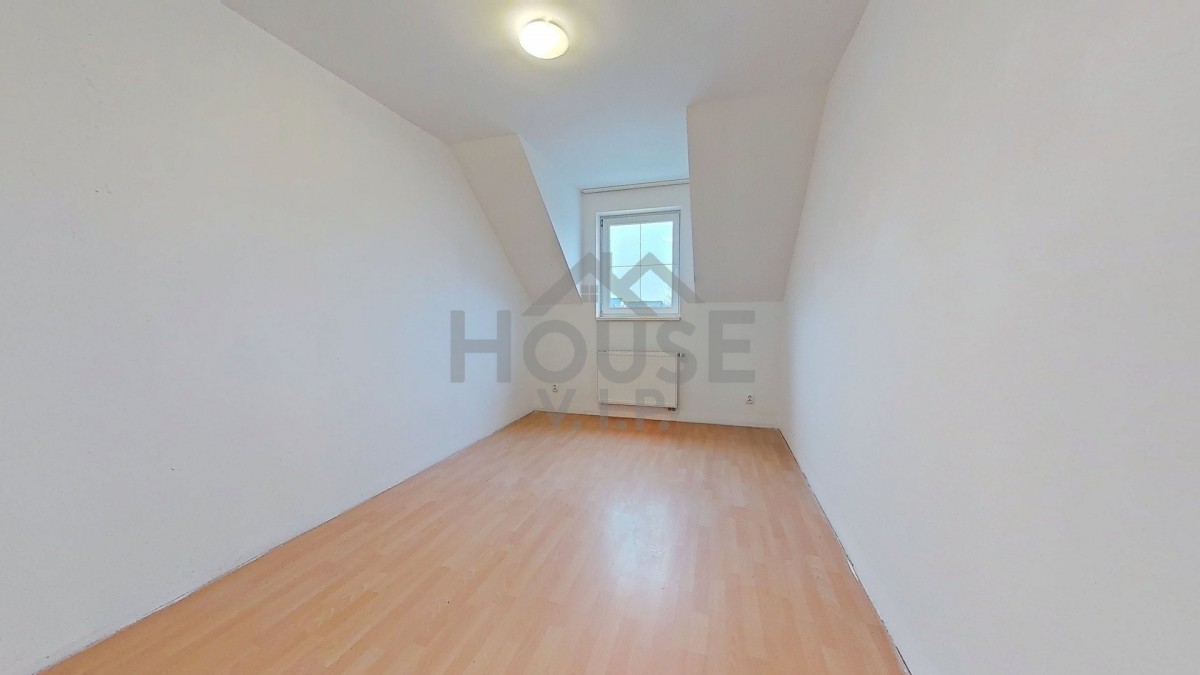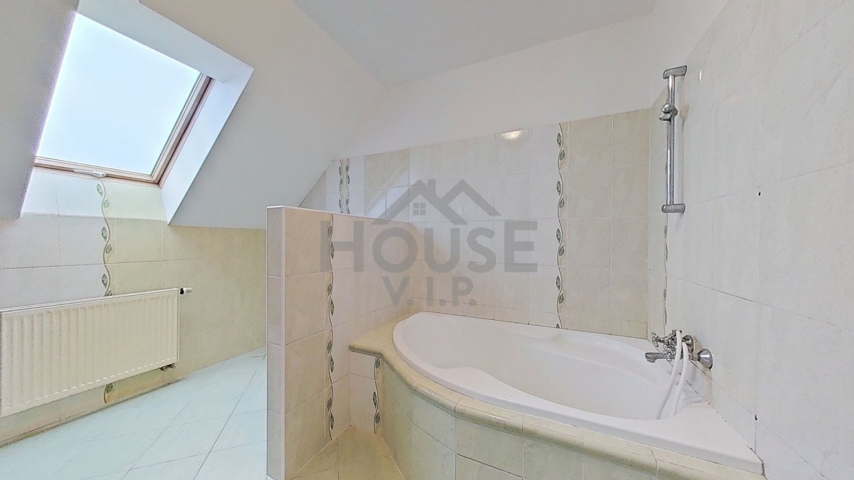 V prvním patře se nachází koupelna se sprchovým koutem, rohovou vanou a toaletou a dále tři samostatné pokoje, z nichž jeden je vybaven vestavěnou rohovou skříní. Druhé patro (podkroví) nabízí velkorysý pokoj se šikmými stropy, který může sloužit například jako ložnice, pracovna nebo herna. Dům je ve velice dobrém technickém stavu, nicméně nový majitel může počítat s drobnými úpravami dle vlastních představ – zejména s výměnou podlahových krytin v obývacím pokoji a v podkrovním pokoji a případnou modernizací kuchyňské linky. Energetický štítek se vyhotovuje, proto zatím uvádíme "G".