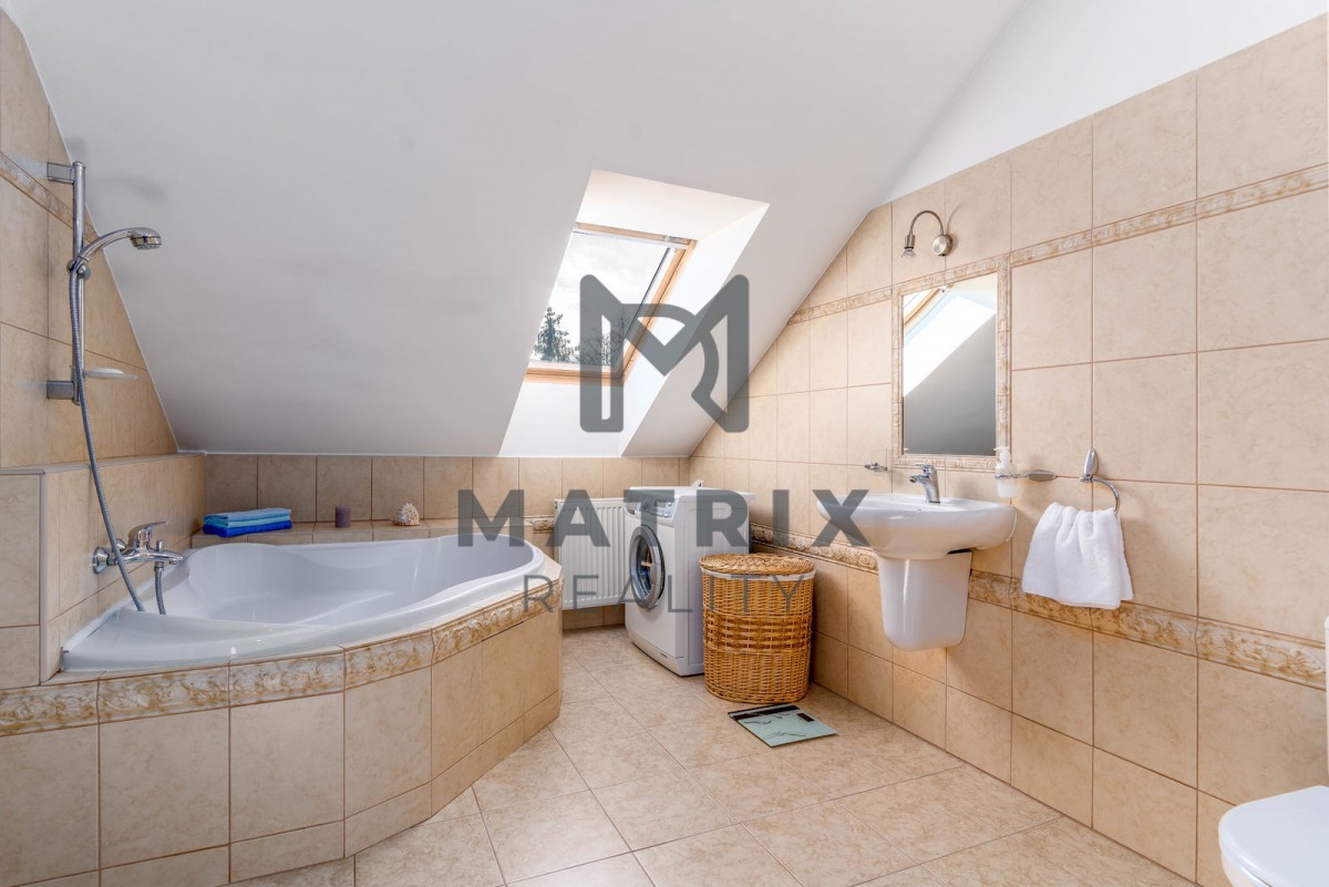 Nabídka tohoto domova, je ideální pro toho, kdo chce bydlet v klidné a příjemné lokalitě, s milými sousedy, v obci s krásnou a oblíbenou školkou a na dosah Prahy. Přesto, že se jedná o dvojdům, veškeré stavební konstru...kce a sítě má každý RD (rodinný dům) samostatné a domy nejsou na sobě závislé. Jedná se o moc hezký, prosvětlený rodinný dům s velkým a otevřeným prostorem v prvním patře, kde naleznete také spodní koupelnu s sociální zařízení WC a sprchovým koutem, technickou místnost a přímý vstup do garáže. Druhé patro pak nabízí 3 pokoje, možnost pracovny na světlém meziprostoru, šatnu a balkón. Objekt je dále z veřejného prostranství střežen kamerovým systémem s možností dálkového přenosu prostřednictvím GSM brány a to i na televizi, v domě je také umístěna bezdrátová EZS. Dlažba v kuchyni je elektricky vyhřívaná (termostat). V zimě tohoto roku zakoupeno dřevo do krbu. Možnost instalace tepelného čerpadla. Prodej domu s kompletním vybavením.