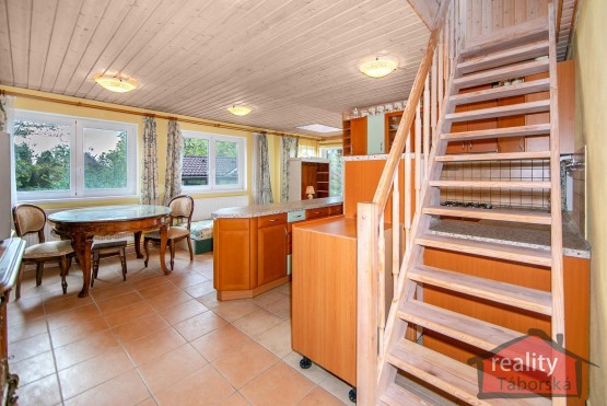 V patře jsou dva pokoje (20m2 a 8m2).