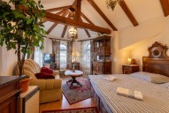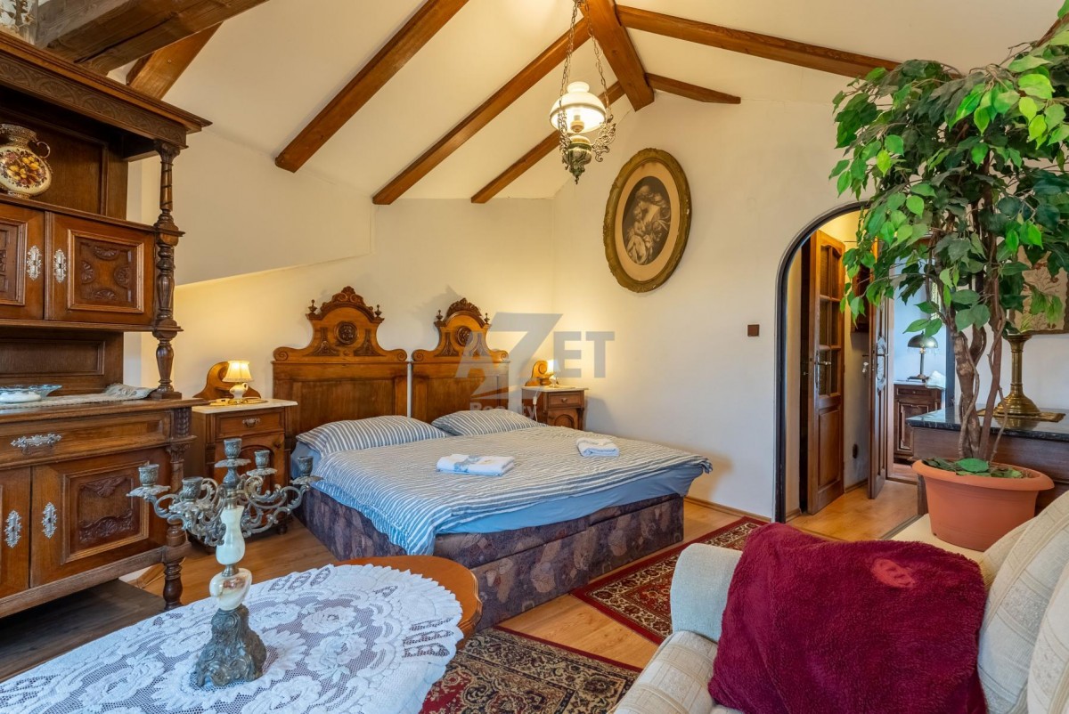 Druhé křídlo domu nabízí další pokoje, apartmány, prádelnu a úložné prostory. Celkem je zde 14 pokojů + byt pro majitele, s možností vytvoření až 56 samostatných bytových jednotek.