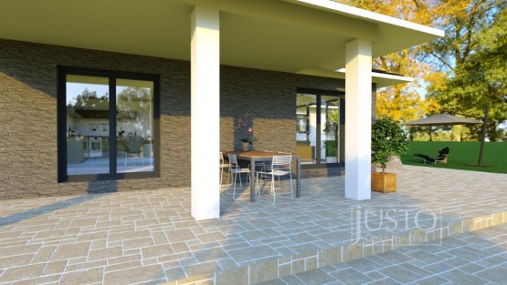 Vstup do domu bude hlavním vchodem o...rientovaný na jihozápad. V obytné jednotce RD (rodinný dům) bude u hlavního vchodu umístěno zádveří, a dále pak chodba se vstupy do jednotlivých místností. Vedle zádveří pak bude umístěna technická místnost s prádelnou. Na hlavní chodbu bude poté navazovat pracovna, dva dětské pokoje, ložnice, koupelna a sociální zařízení WC s bidetem. V čele hlavní chodby bude obývací pokoj s kuchyňským a jídelním koutem, z kterých bude přímí vstup posuvnými dveřmi na terasu.