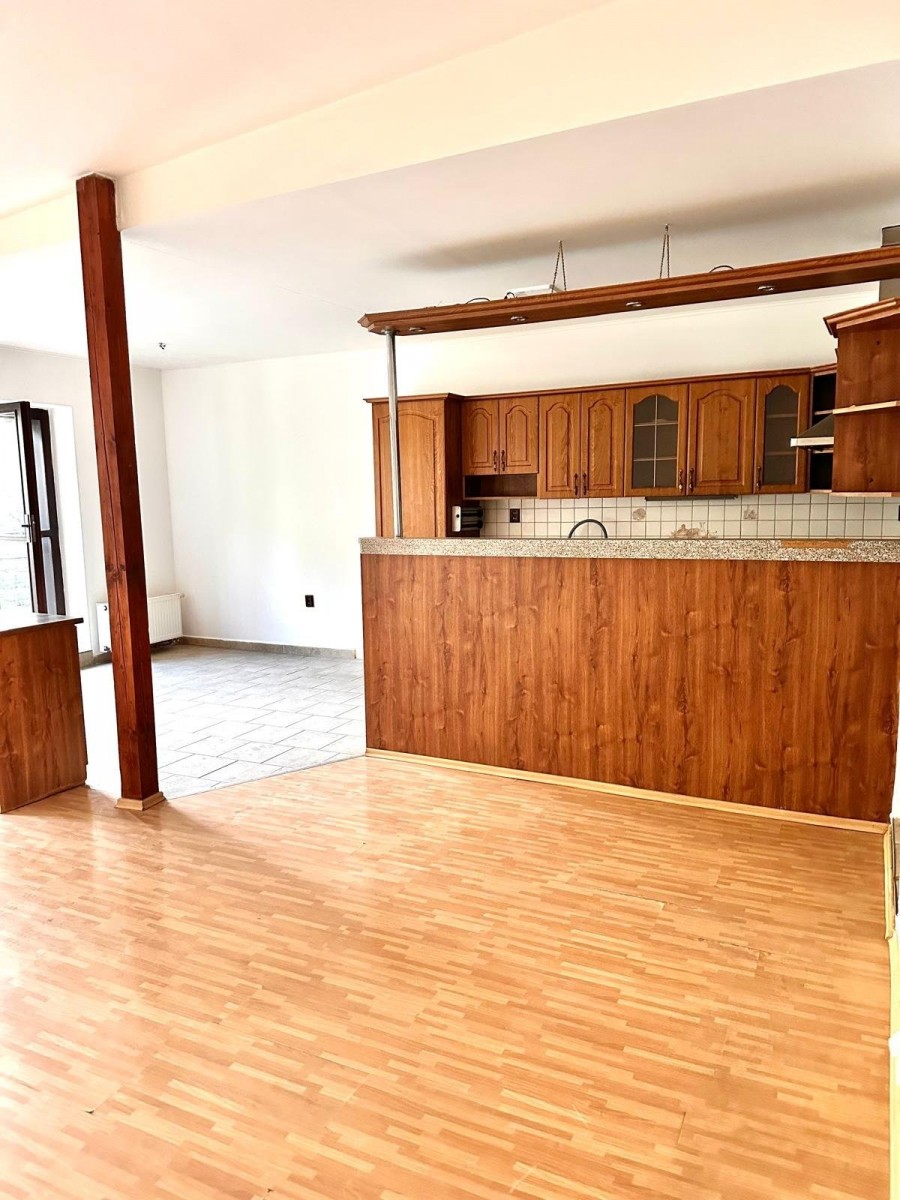 Dominantní místností domu je obývací pokoj s kuchyňským koutem, z kterého vedou dveře přímo na slunnou terasu, která nabízí ideální zázemí pro grilování či posezení s přáteli.