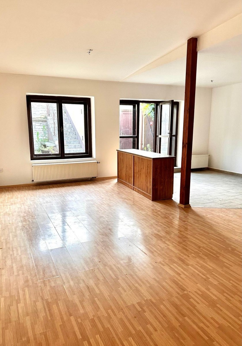 RD (rodinný dům) je situován na východní hranici pozemku o ...celkové velikosti 528 m². Jedná se o částečně podsklepený, řadový dům s jedním nadzemním podlažím a obytným podkrovím. Objekt je připojen na veřejné rozvody – vodovod, kanalizace, plyn. Současně disponuje i studnou. Dům je vytápěn plynovým kotlem, který se nachází v technické místnosti (viz plánek přízemí - fotografie).