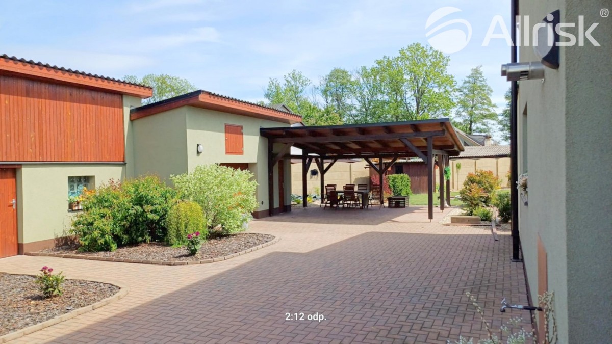 vydlážděný dvůr s pergolou (posezení / parkování až pro 2 vozy)