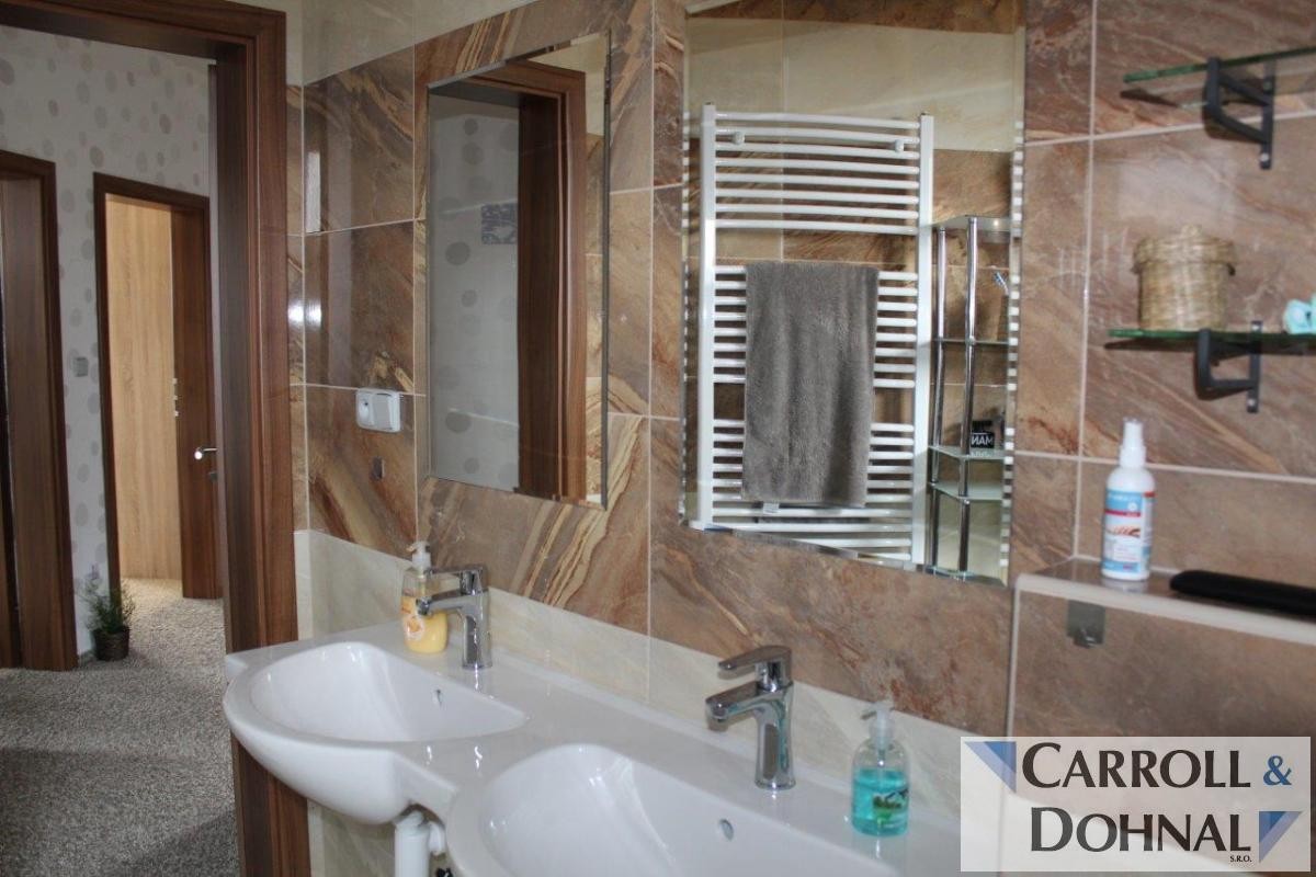 Vytápění a ohřev teplé vody plynový kotel, podlahové vytápění v celém přízemí a částečně i v 1 patře. Dům je napojen na centrální vodovod a kanalizaci. Pozemek je celý oplocen, dálkově ovládaná pojízdná brána pro vjezd, elektronický bezpečnostní systém, zapuštěný venkovní bazén se slunící plochou a výhledem do krajiny, garážové stání pro 2 auta, zastřešené krbové posezení zařízeno nábytkem a krbem. Veškerý interiér v domě i mimo dům je řešen funkčně a nadčasově. Nemovitost se nachází v klidné vilové čtvrti a v dosahu je veškerá občanská vybavenost, vzdálenost do centra Ostrava cca 15 min autem.