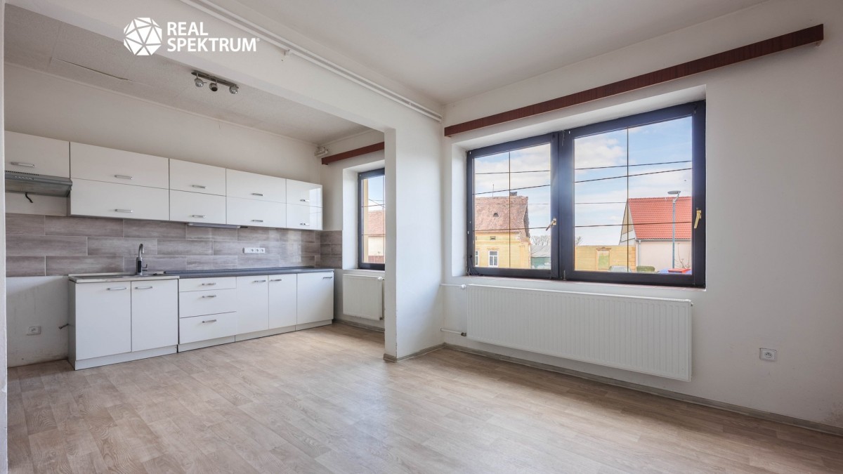 Nabízíme k prodeji rodinný dům v obci Kyjovice, který představuje zajímavou kombinaci bydlení a podnikání s dalším potenciálem do budoucna. Nemovitost je aktuálně rozdělena na dvě samostatné části. V jedné se nachází prost...orný byt o dispozici 2+kk (58 m²) vhodný pro komfortní bydlení, druhou část tvoří obchodní prostor s kompletním zázemím (98 m²). Ten může sloužit pro vlastní podnikání, případně jej lze upravit na další prostornou bytovou jednotku.