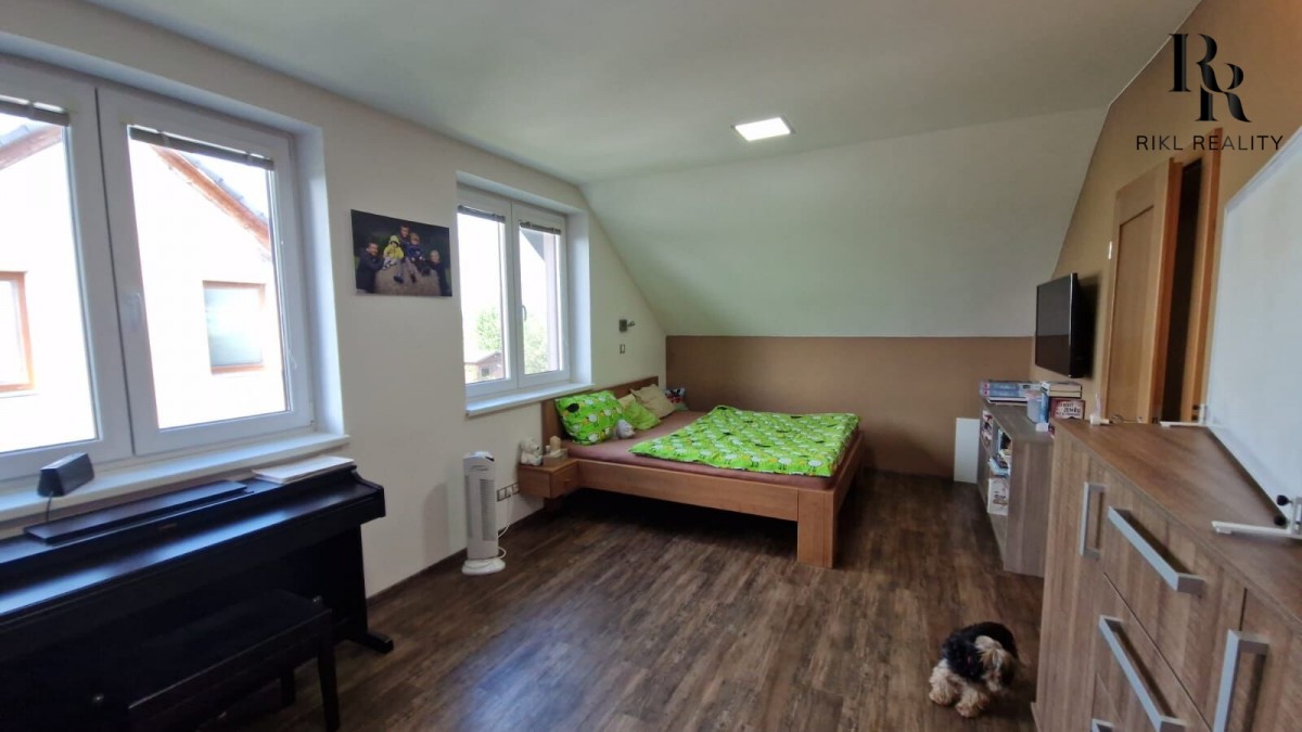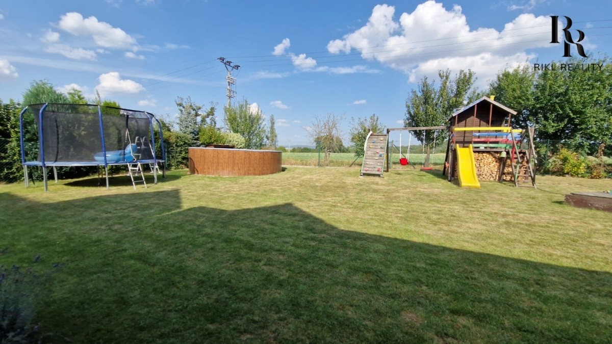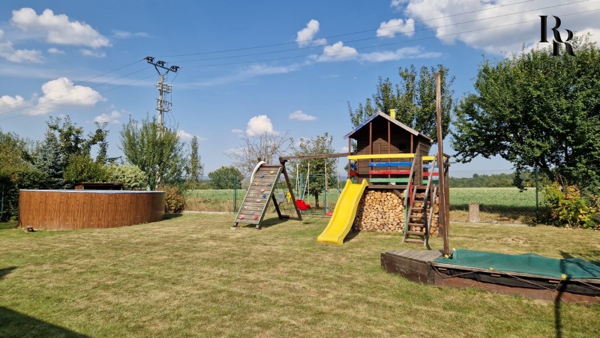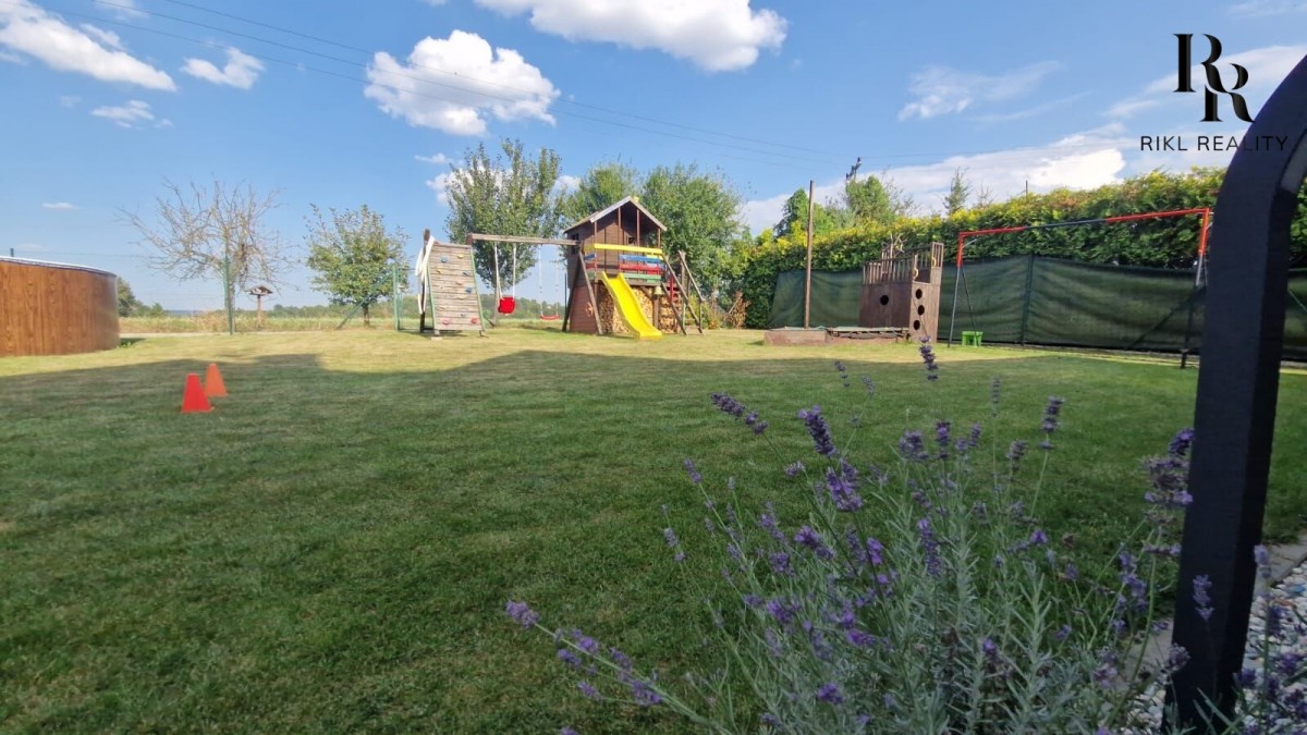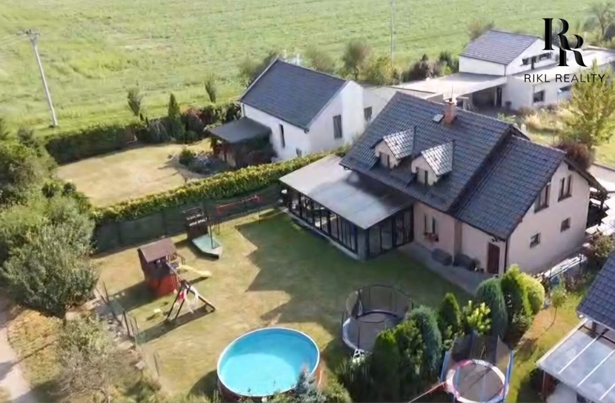Venku na vás čeká garáž, zahradní domek, dětské hřiště a bazén - vše pro aktivní rodinný život.