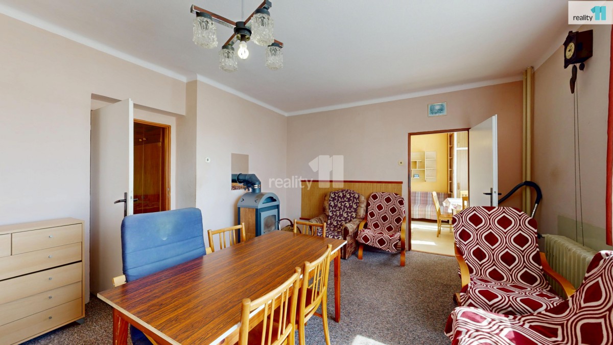Reality 11 Vám zprostředkují koupi dvougeneračního rodinného domu s dalšími stavbami (dílny a garáže) v malebné obci Vojslavice, okres Pelhřimov. Dům byl zkolaudován v roce 1981 a nachází se v původním udržovaném stavu, co...ž poskytuje skvělou příležitost pro částečnou nebo kompletní rekonstrukci dle vašich představ. Jedná se o dvoupodlažní dům s následujícím dispozičním řešením: - Podzemní podlaží: sklepní prostory, kotelna, garáž, 1. NP (první nadzemní patro): vstupní veranda, chodba, komora, koupelna, pokoj, kuchyň, obývací pokoj a schodiště. - 2. NP (druhé nadzemní patro): chodba, komora, kuchyň, dva pokoje, koupelna, samostatné sociální zařízení WC, terasa, Půdní prostor pro možnou vestavbu dalších pokojů. Celková plocha pozemku činí 800 m², z toho zastavěná plocha domem je 110m². Na pozemku se dále nachází doplňková stavba (110m²), která slouží jako garáž a dílna s půdním prostorem. Inženýrské sítě: elektřina a obecní vodovod jsou zavedeny do domu, odpad je řešen napojením na obecní kanalizaci, na pozemku se nachází vlastní vrtaná studna. Vytápění je zajištěno ústředním topením na tuhá paliva. K dispozici máme podrobné půdorysy a 3D virtuální prohlídku od společnosti 3Dvirtualcz, díky které si můžete dům prohlédnout z pohodlí Vašeho domova. Pro více informací nebo sjednání osobní prohlídky kontaktujte makléře. Obec Vojslavice se nachází 16km od města Ledeč nad Sázavou, 12km od města Humpolec, sjezd dálnice D1 - 4km od domu (sjezd a nájezd Praha exit 75km) a (sjezd a nájezd Brno exit 82km) - dále exit 66km je vzdálen 14km od domu. Tento dům nabízí skvělou příležitost pro vytvoření domova dle vašich představ v zajímavé lokalitě s velice dobrou dopravní dostupností. Ev. číslo: 27336. Energetický štítek: G (300 kWh/m2/rok).