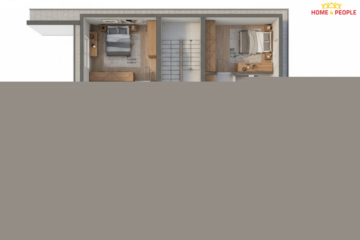 Dům o dispozici 5+kk s promyšleným dvoupodlažním uspořádáním poskytuje dostatek soukromí a prostoru pro velkou rodinu.