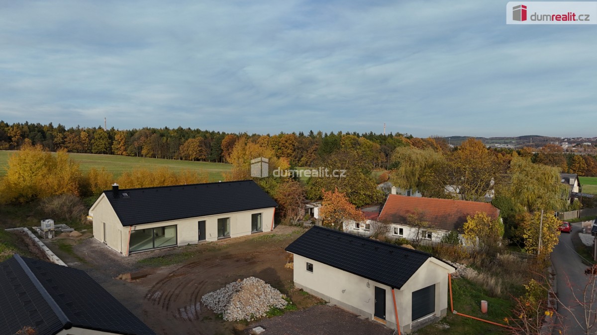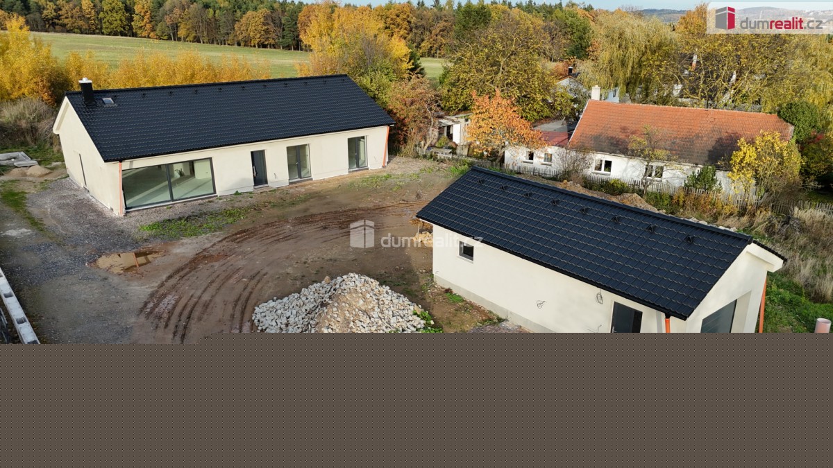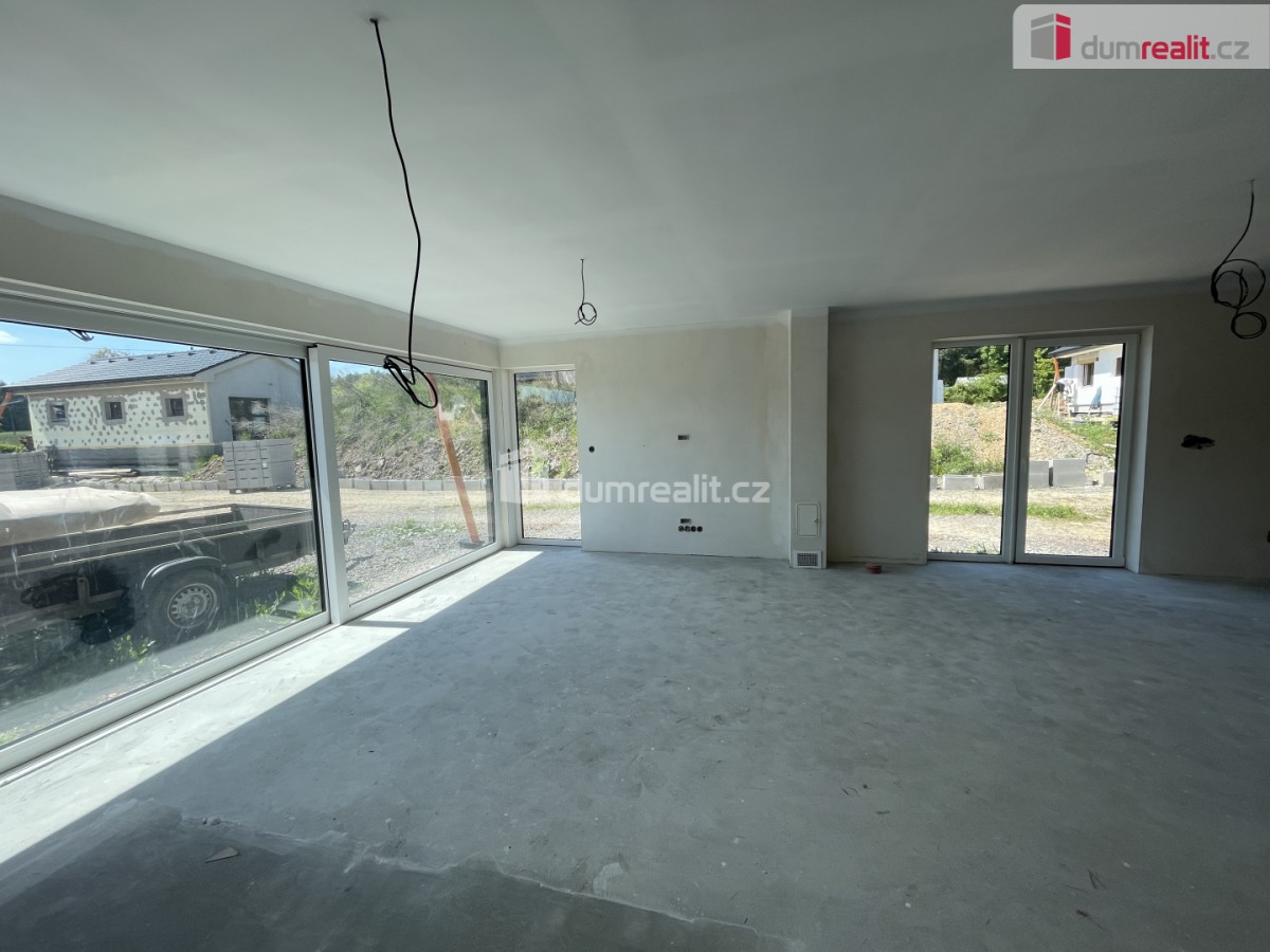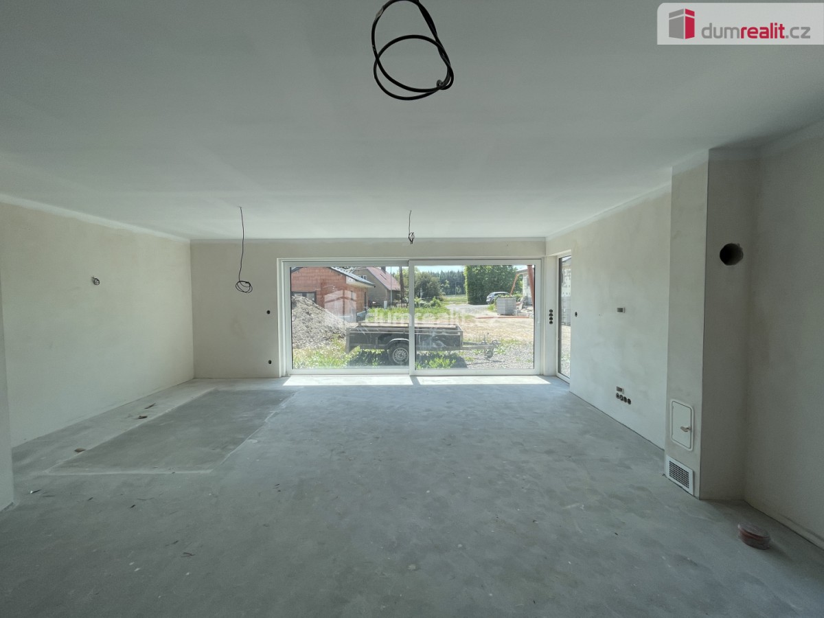 Stavba je ve fázi hrubé dokončenosti: rozvody elektřiny, vody a odpadů, betonové podlahy s podlahovým topením, sádrokartonové podhledy s přípravou na světla, omítky, venkovní fasáda, příprava pro tepelné čerpadlo a betonová střešní krytina. Osazena plastová okna a dveře v barvě antracit (trojskla). Finální dokončení je možné upravit dle vlastních představ.