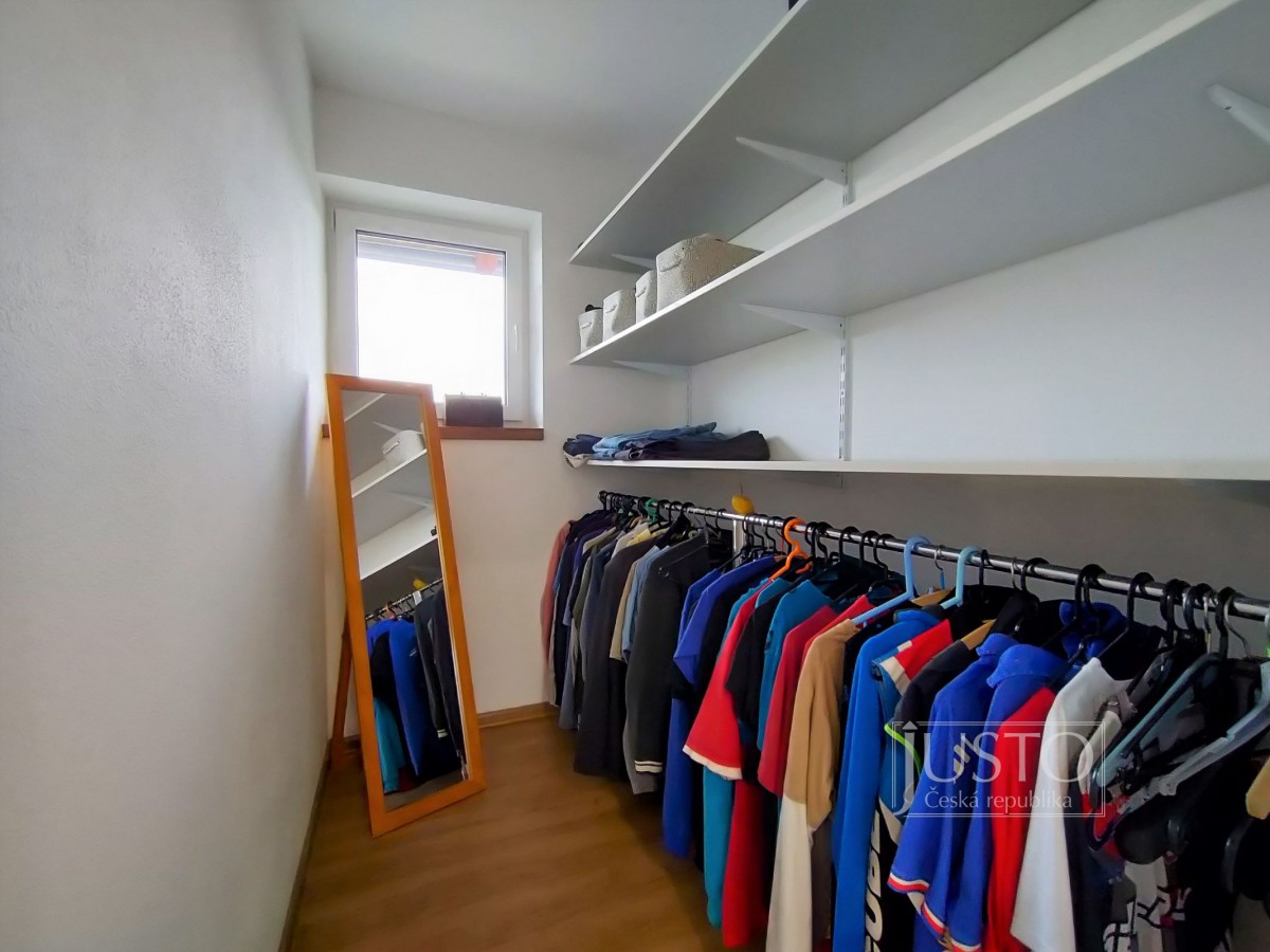 V domě je dostatek úložného prostoru a to i v technické místnosti o výměře 5, 6 m², ve které je umístěna technologie k tepelnému čerpadlu a boiler. V této místnosti je je přípojka pro pračku a sušičku.