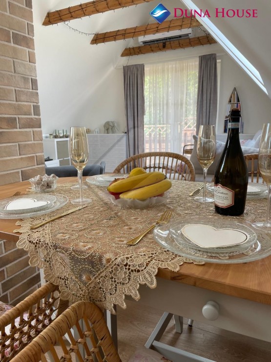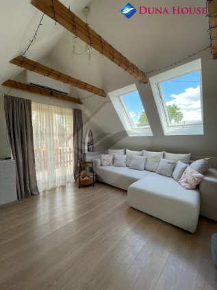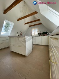Podkroví: Prostorná kuchyně s moderními spotřebiči, jídelna, obývací pokoj s výstupem na balkon a další terasu.