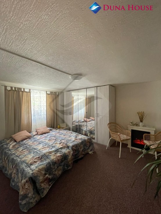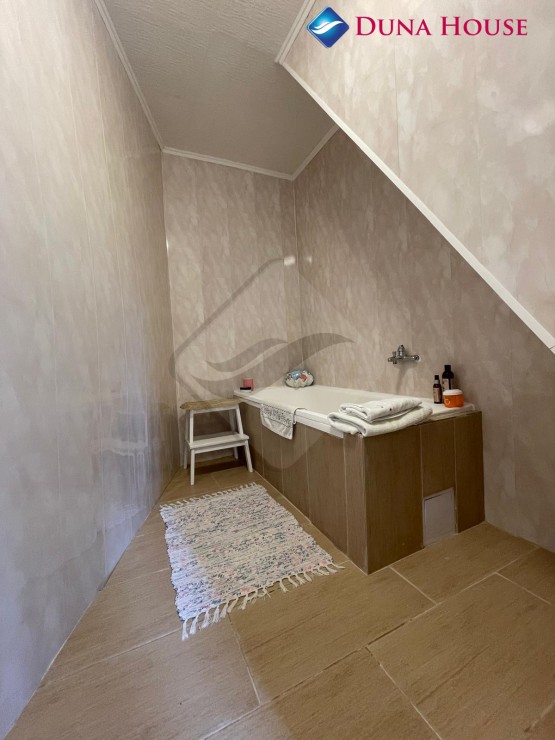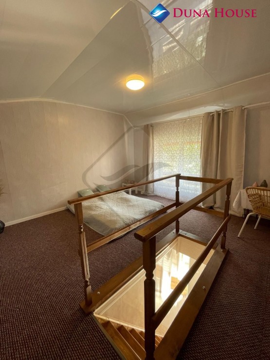 Vedlejší domek nabízí další možnosti využití. V přízemí se nachází koupelna s vanou a obývací pokoj s přípojkami pro kuchyňskou linku. Ve 2. patře je umístěna ložnice.