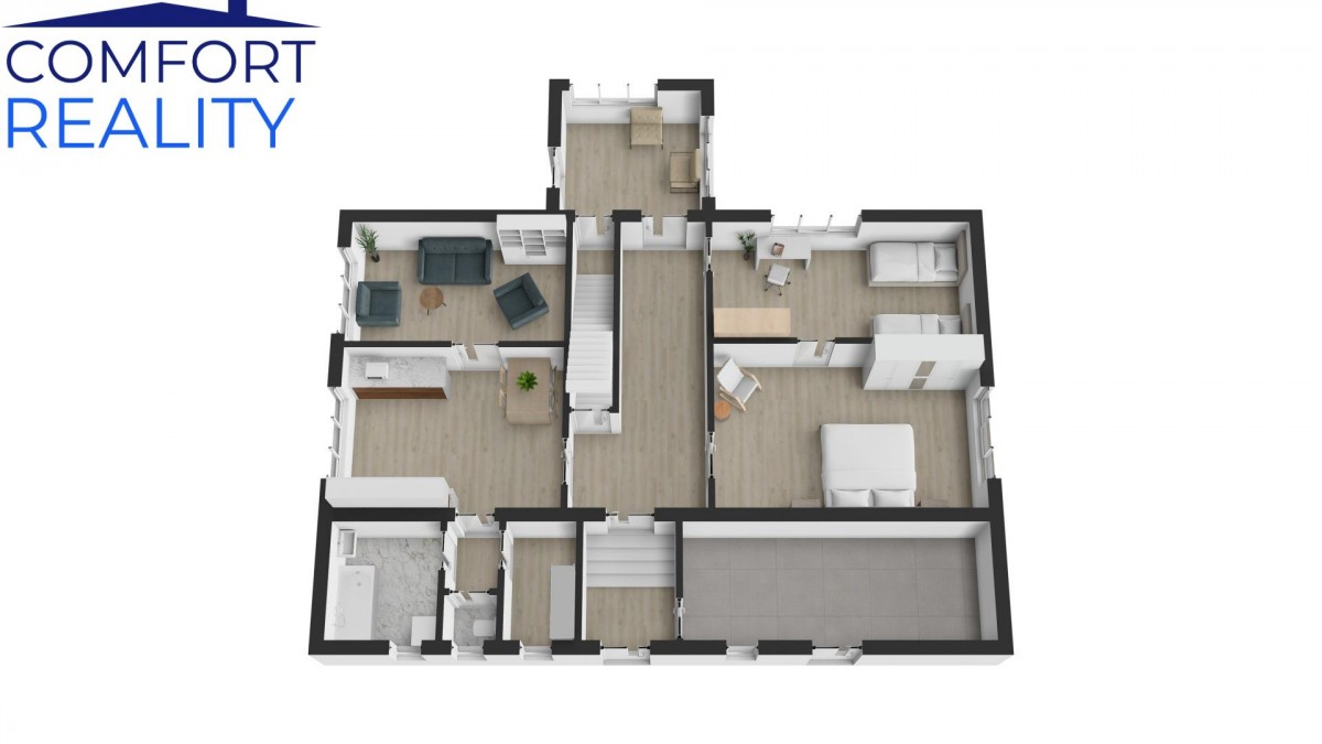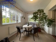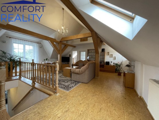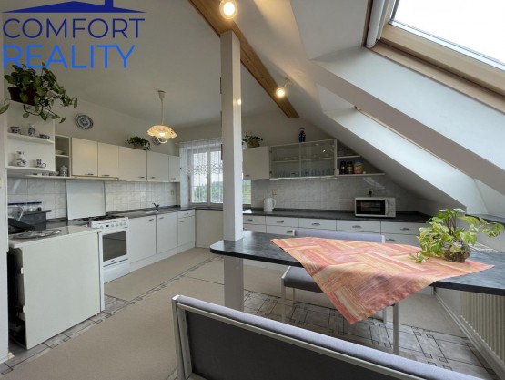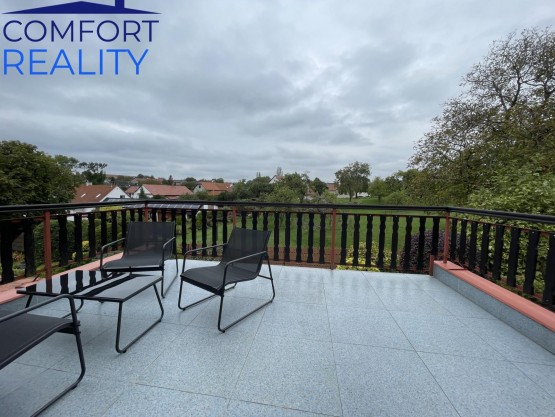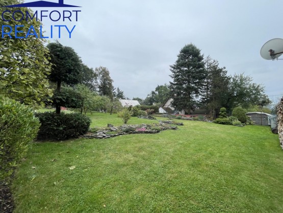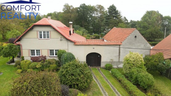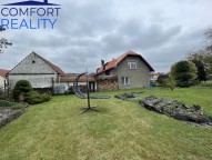 Dům jako samotný je umístěn na okraji obce, výstavba proběhla v roce 1947, kdy horní patro bylo přistavěno v letech 2001 2004 (je tak relativně mladé) a náleží k němu rovinatý pozemek o celkové výměře 1885 m2, na kterém je mimo samotný dům ještě umístěna hospodářská budova, která je z části využívána jako garáž, z části je dílnou a zázemím pro domácí zvířata. Pozemek je situován do klidové zóny, je vkusně udržován a ať už chcete pěstovat zeleninu na zahradě, posedět s přáteli či si s dětmi zahrát fotbal, máte zde prostor pro všechny a pro vše. Samotný dům je dispozičně řešen na patro s dispozicí 6+2 (2 krát 3+1) s tím, že přízemí je se zádveřím, třemi pokoji, kuchyni, koupelně, sociální zařízení WC, komoře a kotelně. Horní patro je o dvou místnostech, prostorné hale, kuchyni, koupelně, sociální zařízení WC a v neposlední řadě velké terase. Dům má vyměněny okna za plastová (kromě zádveří), proběhla zde částečně výměna rozvodů elektřiny, je napojen na plyn, elektřinu, zdroj vody z obecního vodovodu, odpadní vody svedeny do stávající jímky. Dům je z části podsklepený. O vytápění domu a ohřev TUV se stará kondenzační plynový kotel z r. 2023, zůstala i možnost topit v kotli na tuhá paliva (ve 3. emisní třídě). Dům je ihned obyvatelný bez zásadních investic většího rozsahu. Kdo si to umí spočítat a hledá klidné a pohodové bydlení s dobrou občanskou dostupností do okolních měst, tak koupí získá velkorysé bydlení za velice rozumnou cenu. Doporučuji prohlídku.