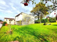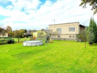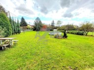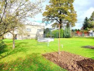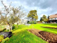K domu náleží rovinatý oplocený pozemek na kterým najdete okrasné stromy.