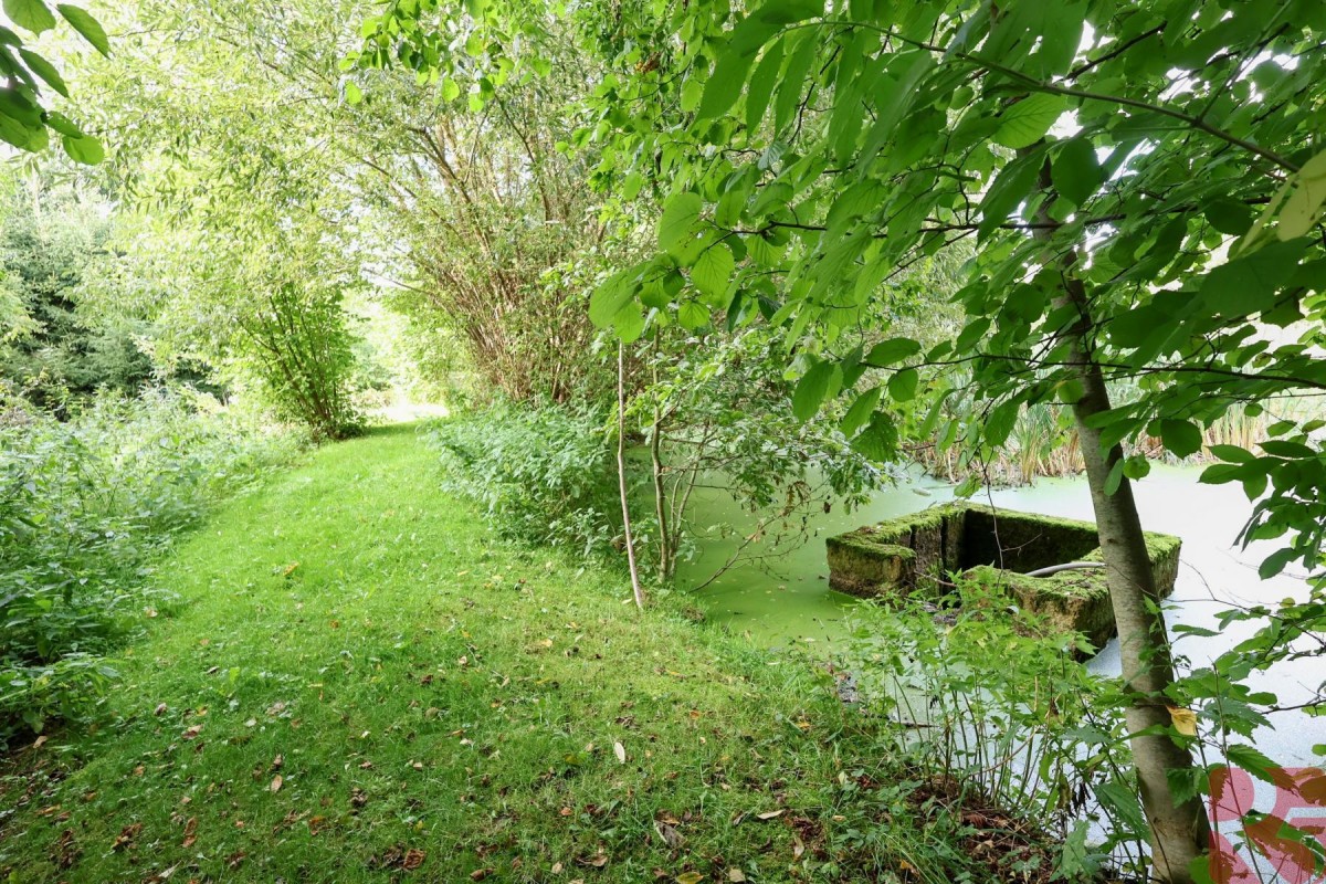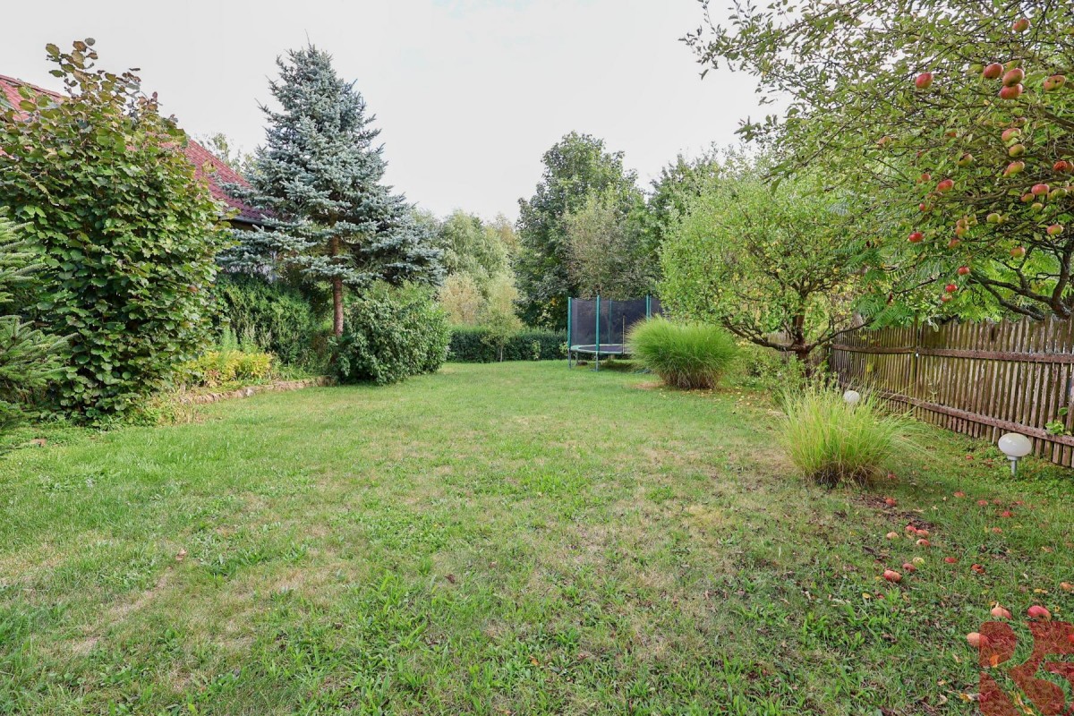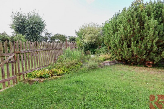 K domu je zahrada o rozloze 2 875m2 jen 30 m od domu, situovaná na hrázi rybníka s malým potůčkem, osázená ovocnými stromy, ideální k chovu zvířat, nebo pěstování zahradních a rostlinných plodin.