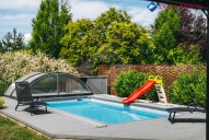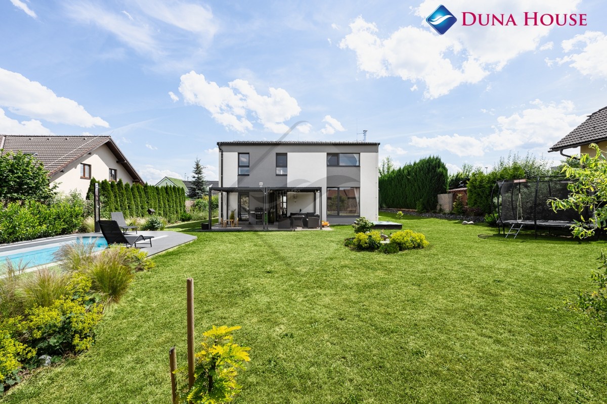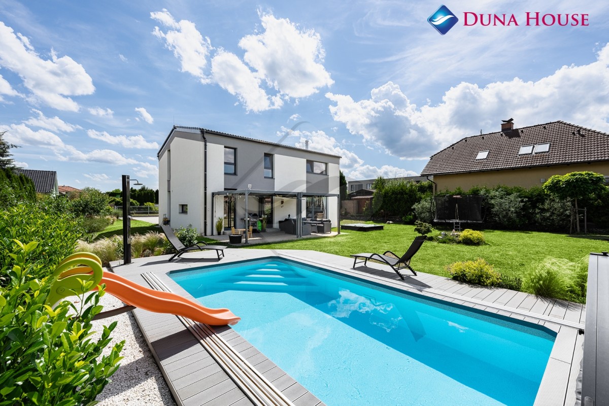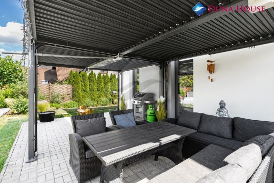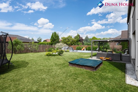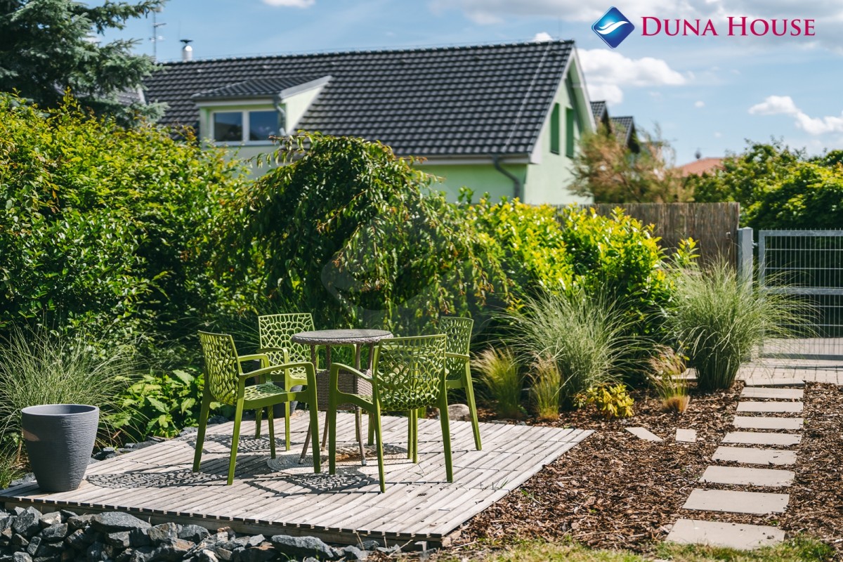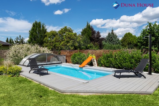 Z obývacího pokoje je vstup na zastřešenou terasu s moc hezkým pohledem na celou zahradu. Zahrada je zatravněná, osázená okrasnými rostlinami. Od grilování si pak můžete odskočit do vyhřívaného bazénu. Bazén je vybaven také výkonným protiproudem se kterým si i na obyčejném zahradním bazénu můžete pravidelně a velice dobře kondičně zaplavat. Čistota vody je zajištěna pískovou filtrací v kombinaci s generováním chloru ze slané vody. Nemusíte se tedy zlobit s nějakými smradlavými chlorovými tabletami. Vodu tu máte jako v moři.