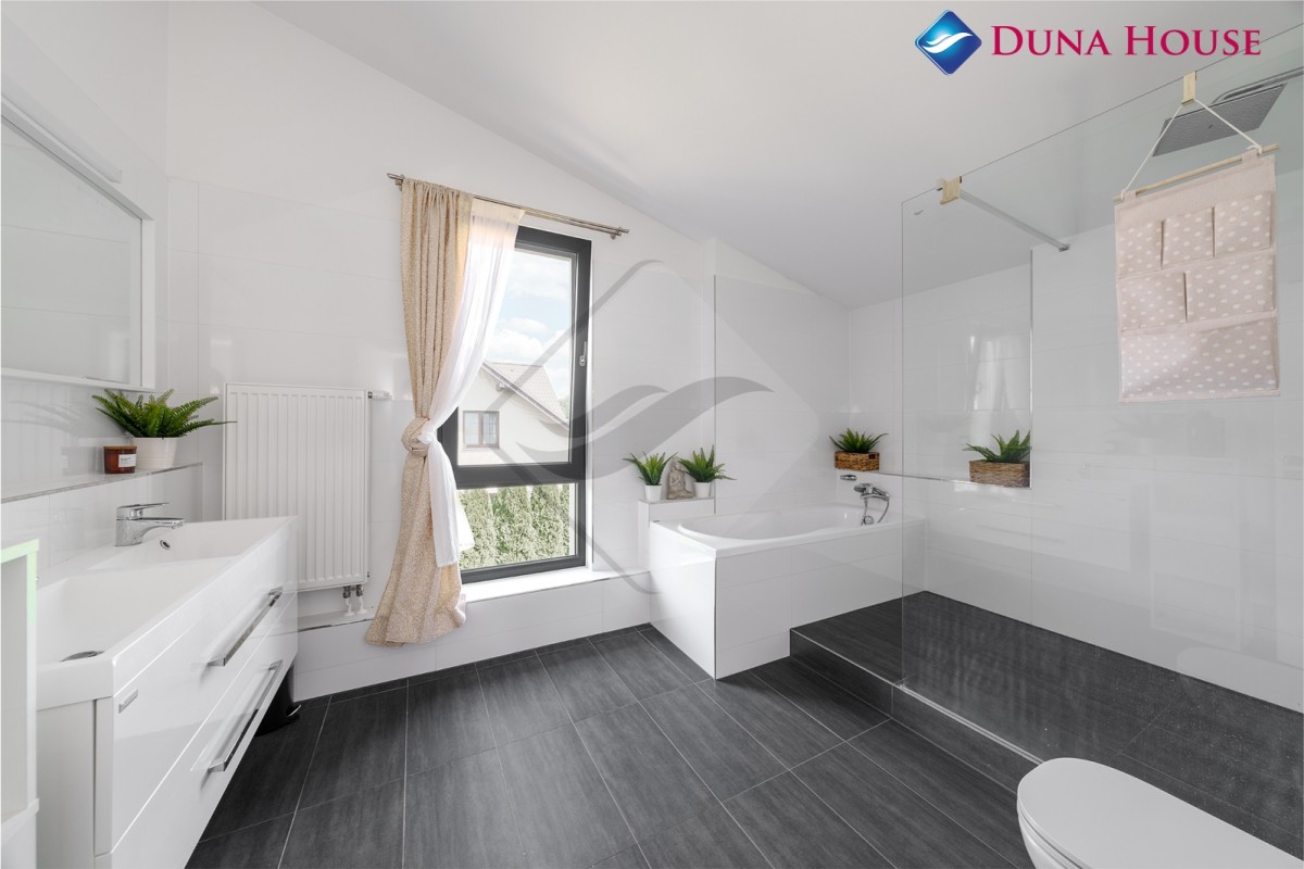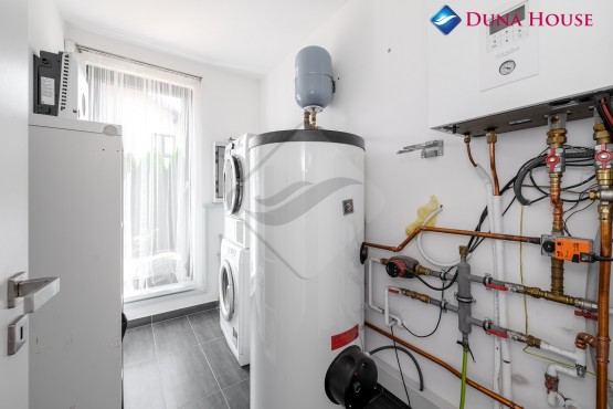 Dům má vlastní vrtanou studnu s čerpadlem. V technické místnosti je kohoutek, kterým můžete vodu ze studny nasměrovat nejenom do zahradní hadice pro zavlažování ale také do dvou záchodů. Toalety tedy splachujete nikoliv normální placenou městskou vodou ale výrazně levněji vlastní vodou ze studny. Vytápění v přízemí je řešeno podlahovým topením. V prvním patře pak jsou v každé místnosti radiátory. Vše napojeno na tepelné čerpadlo a fotovoltaiku s velkou baterií. Dům je velice energeticky úsporný. V praxi při měsíčních nákladech na elektřinu kolem 4500 Kč máte celou zimní sezonu v celém domě krásně teploučko, nikdy se vám nestane, že byste neměli dostatek horké vody a od března do října se můžete koupat v bazénu s teplotou vody nonstop vyhřátou třeba na 30 °C. Koupací sezonu můžete mít v tomto domě opravdu dlouhou.