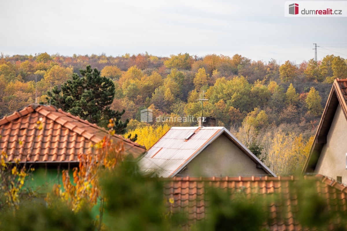 Ze zahrady se dá vyjít do ulice Na Vršku. A z vršku zahrady se dá rozhlédnout po přilehlých kopcích a střechách sousedních domů.