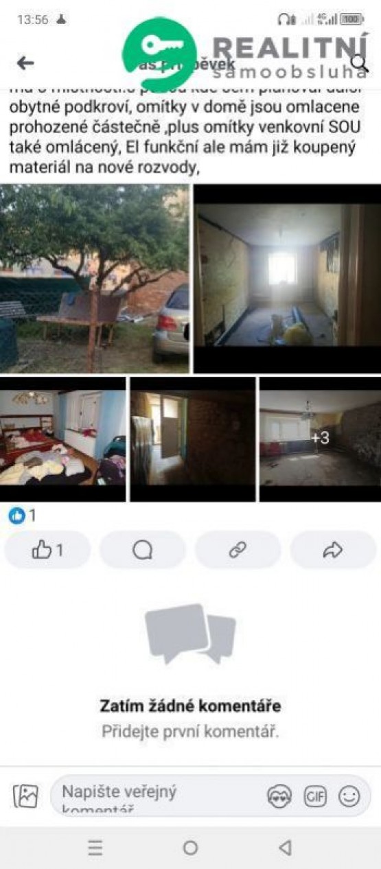 Dům k rekonstrukci, fólie izolace na stavbě, voda El funkční, ale mám tam nové kabely na rozvod , koupelna vymlácená, obytné podkroví asi 25 m2 s internetové připojeníem a tv , dům je na rekonstrukci nebo inve...stiční příležitost, odhadní cena je v tomto stavu 2, 4/2, 8 mil Kč . . střecha plechová, krovy v pohodě, terénní úpravy okolo domu určitě, dům napojen na vodu obecní, vytápění plyn a kamna, dům je suchý, u domu možnost napojit na kanalizaci. My už to neufinancujeme střecha plechová, okolo domu výkop na izolaci do cca150 cm, fólie a různý materiál je na domě , zahrada 500 a dům 194 m2 k tomu. Omítky omlácený jak uvnitř tak zvenku