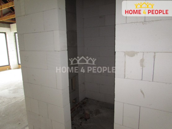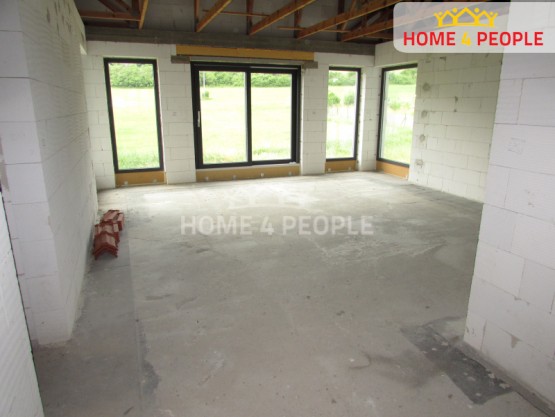 Jedná se o hrubou stavbu jednopod...lažního domu z roku 2019. Dům je orientovaný na jihozápad, tudíž je plný světla a slunce. Při vstupu do domu , Vás čeká po levé straně šatna a po pravé vstup do velké garáže 37m² dílnou a technickou místností, odtud je východ na zahradu. Dále se dostanete doveloryse pojatého obývacího pokoje s velkymí posuvnýmí okny s trojskly a kuchyňským koutem o velikosti 49m². Ke kuchyni náleží spíž 2, 4m².