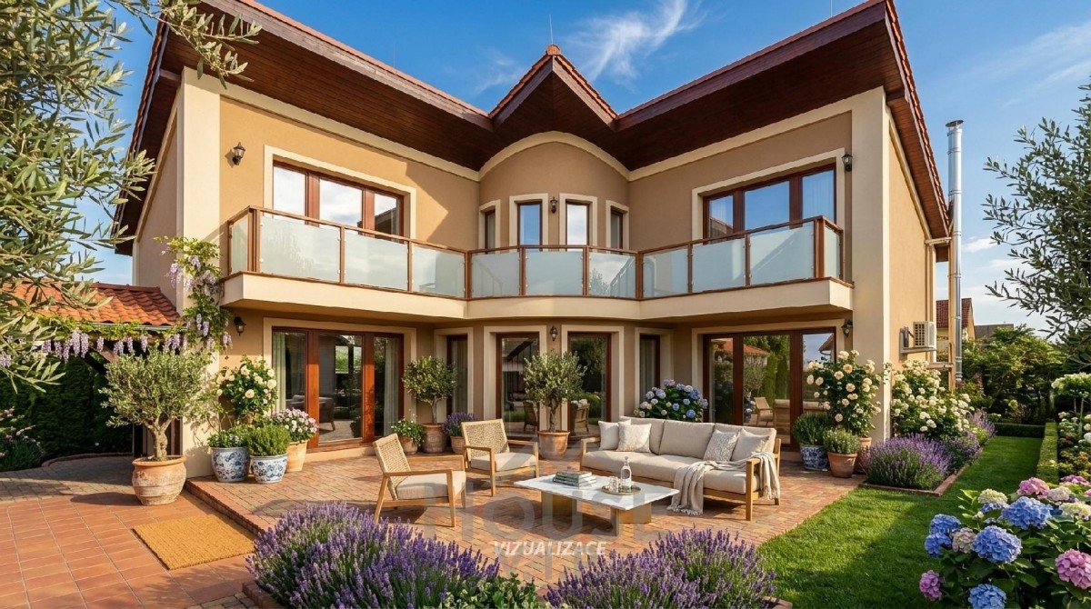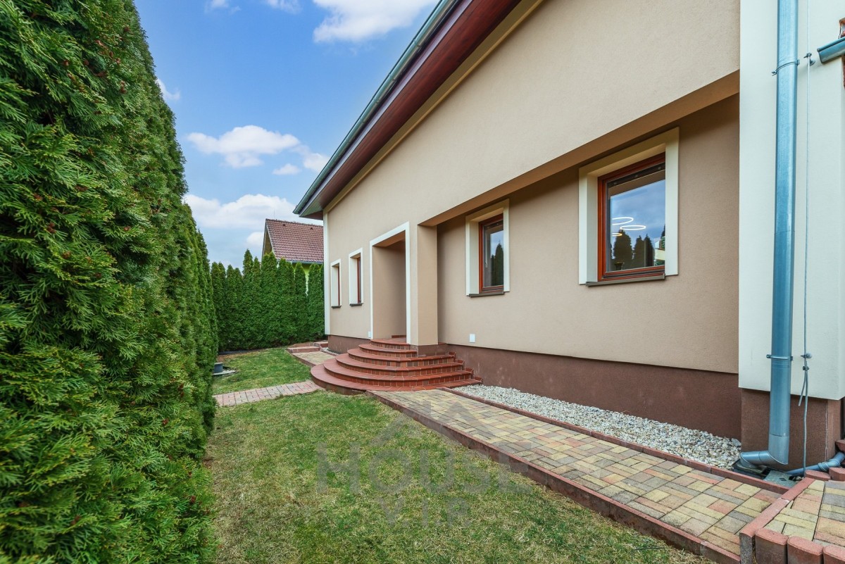 Klimatizovaný dům disponuje vnitřní užitnou plochou 200 m² a je situován na prostorném, pečlivě udržovaném pozemku o velikosti 812 m².