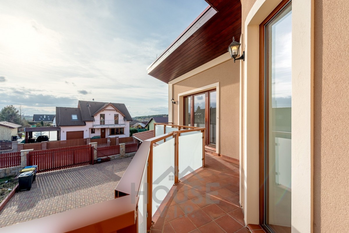 V patře se nachází další terasa, poskytující příjemné soukromí a výhled do lesa a okolí.
