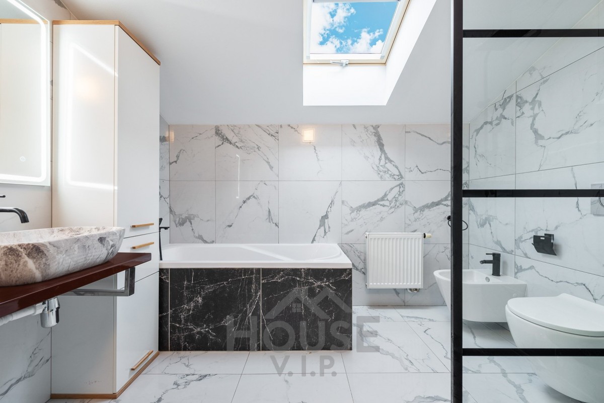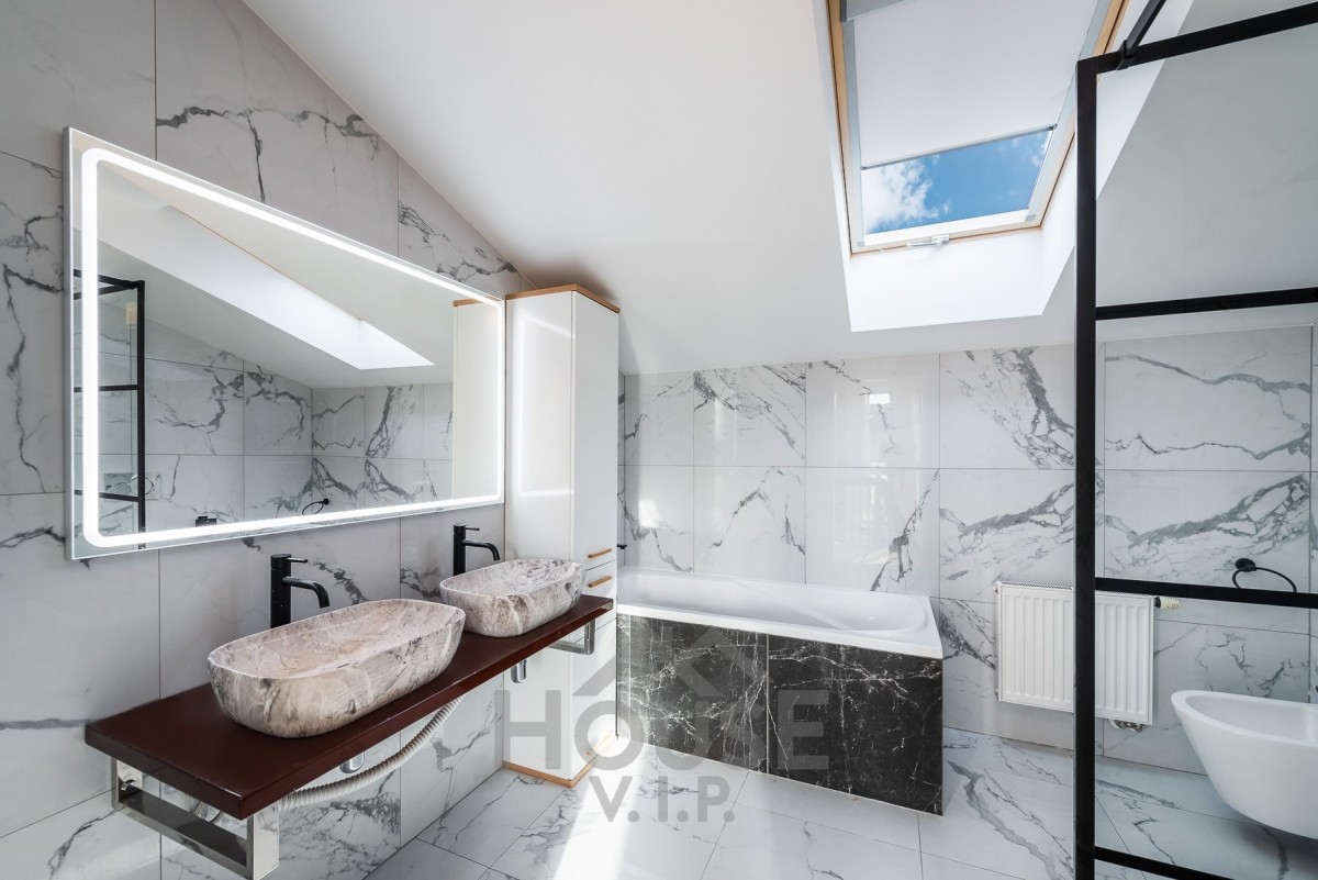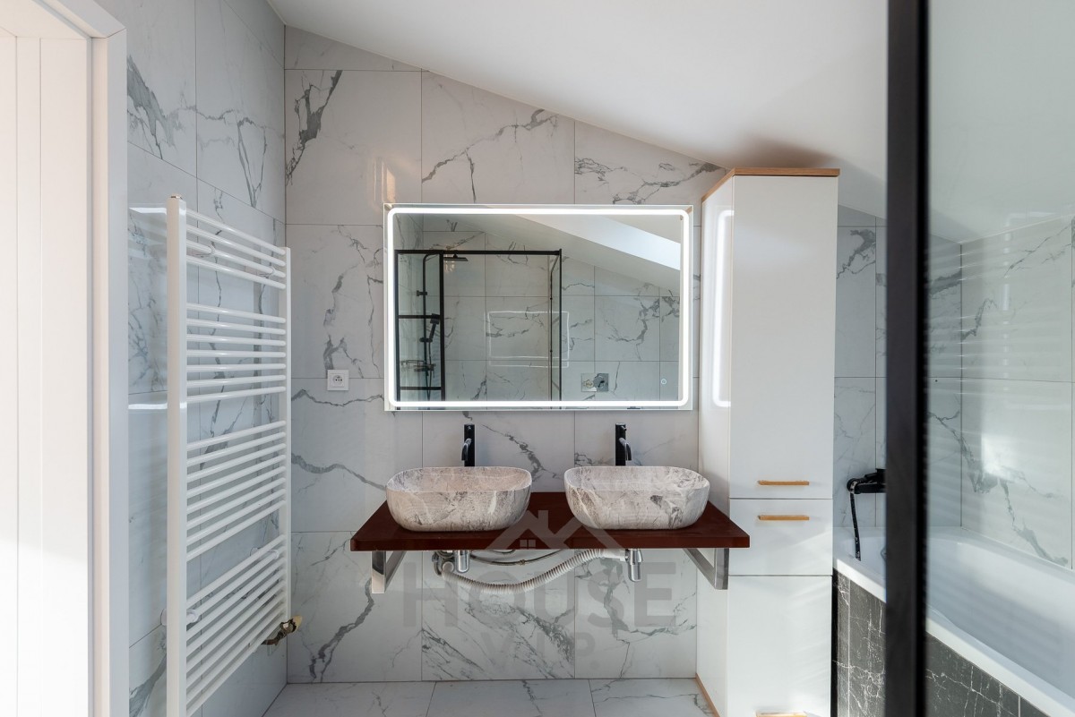 V obou koupelnách je bezbariérový sprchový kout a nadstandardní keramická dlažba a sanita. Jedna z koupelen disponuje také vanou.
