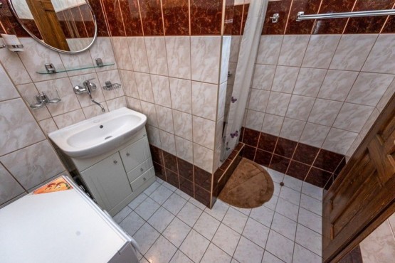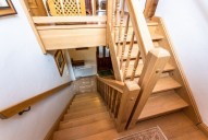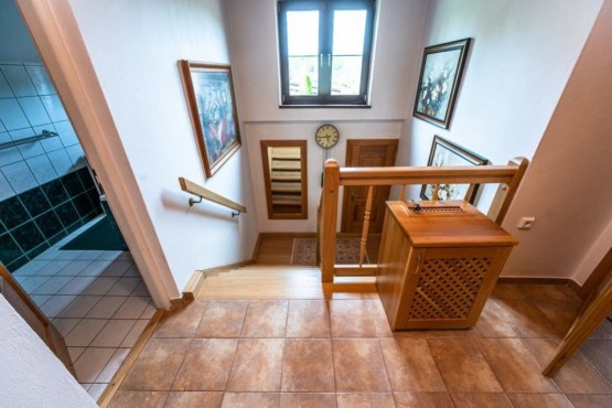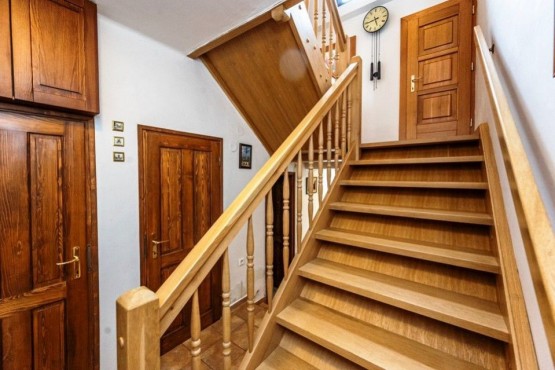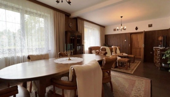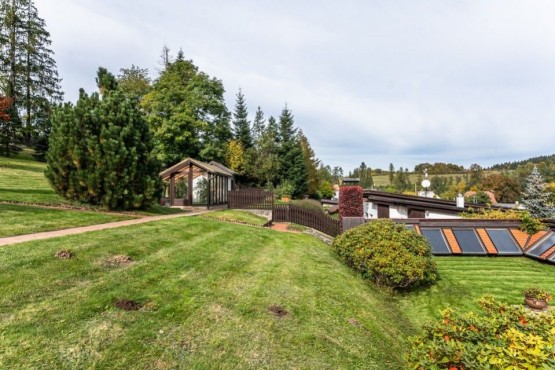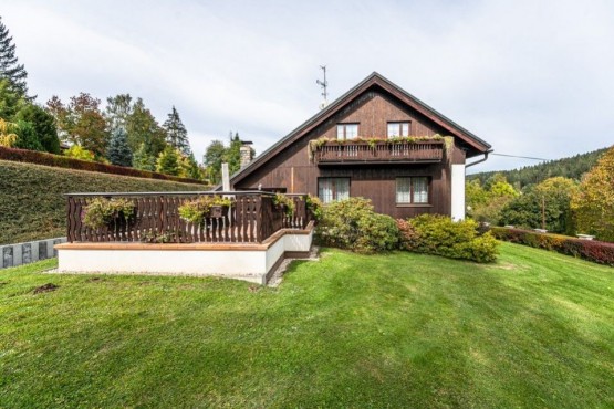 Původní zrekonstruovanou chalupu tvoří v přízemí kuchyně, velký obývací pokoj, z něhož je vst...up do "krbovny" navazující na terasy a zahradu, dále v přízemí najdeme sociální zařízení WC, koupelnu, úložnou komoru, šatnu, předsíň a chodbu se vstupem do sklepa. Dům je kompletně zařízený.