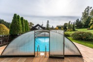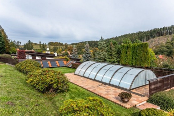 Součástí pozemku je plánována část, kde je umístěn venkovní vyhřívaný bazén (soláry), ale prodej lze dohodnout i bez této části.